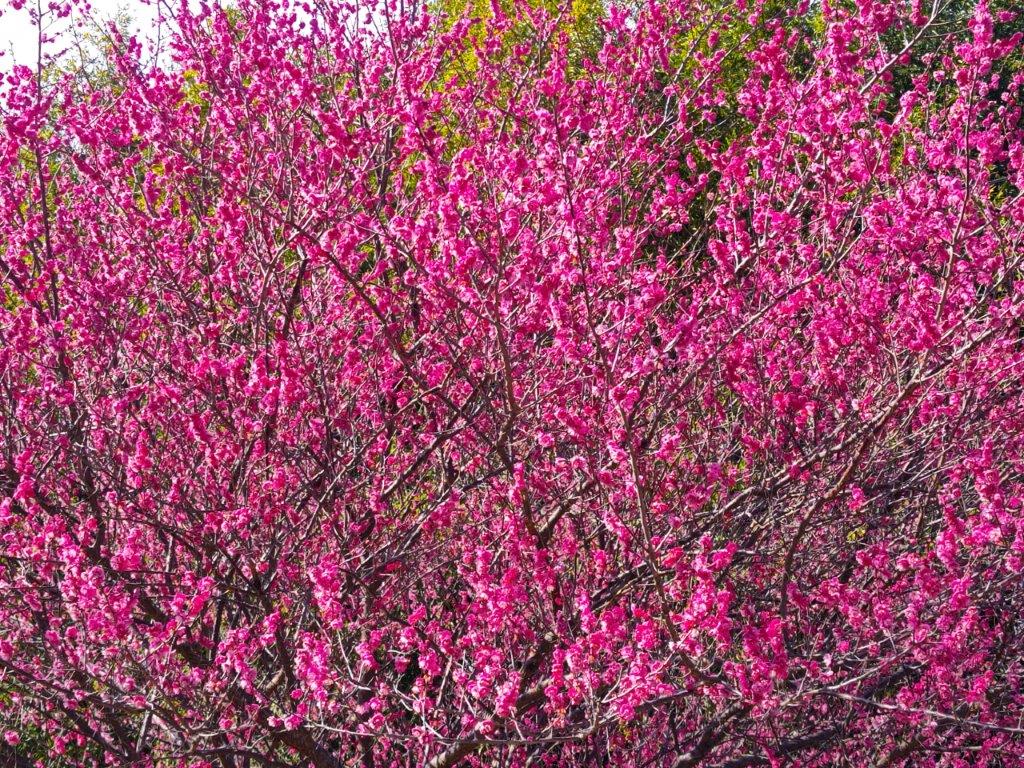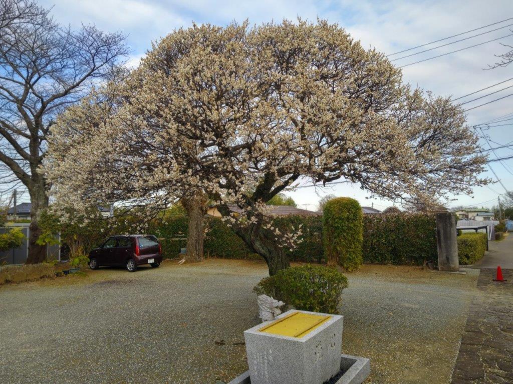 Beyond the green, I could see the dark outline of the Tanzawa mountains under grey clouds. A little further, I reached a road and an electric pylon at the top of the country club. Here, I turned left, descending between the greens, passing the club house and its huge parking lot. At 3h30 I reached the base of the mountain and after a short walk through the countryside, arrived at a bus stop on a busy road. Here and there, I could see the first plum blossoms of the season. A little later, I was on the bus for Atsugi, and at 5pm I boarded the Romance car for the one hour trip back to Tokyo.