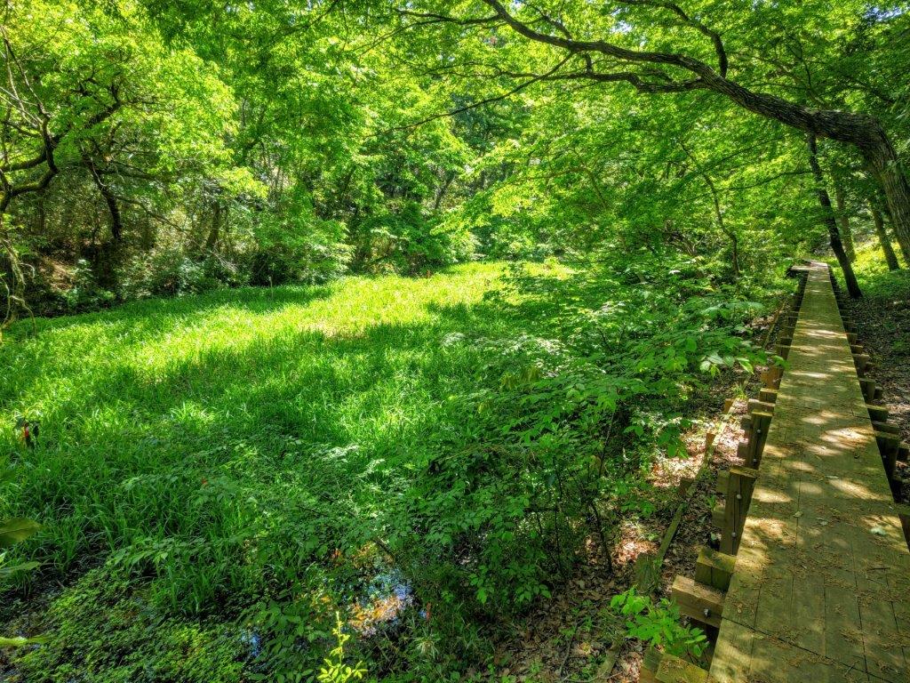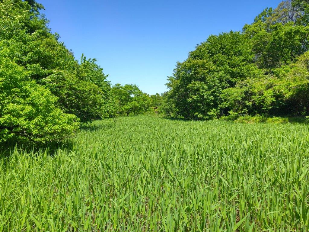 I was lucky to get the last free table under a large tree, although many benches were empty. It was nearly one o’clock so I decided to have an early lunch. I set off again a little past 1pm, now following the Oku-musashi Long Trail (奥武蔵ロングトレイル). After passing through a bamboo grove, I followed a winding path hugging the mountain side. Beyond a stream, the path started to climb, then became level at a clearing for the power line passing over Yugate. Shortly after crossing a second stream on a bridge made of two wooden planks, I arrived at Tsuchiyama Pass (土山峠), intersecting with my Fukuzawa hike.