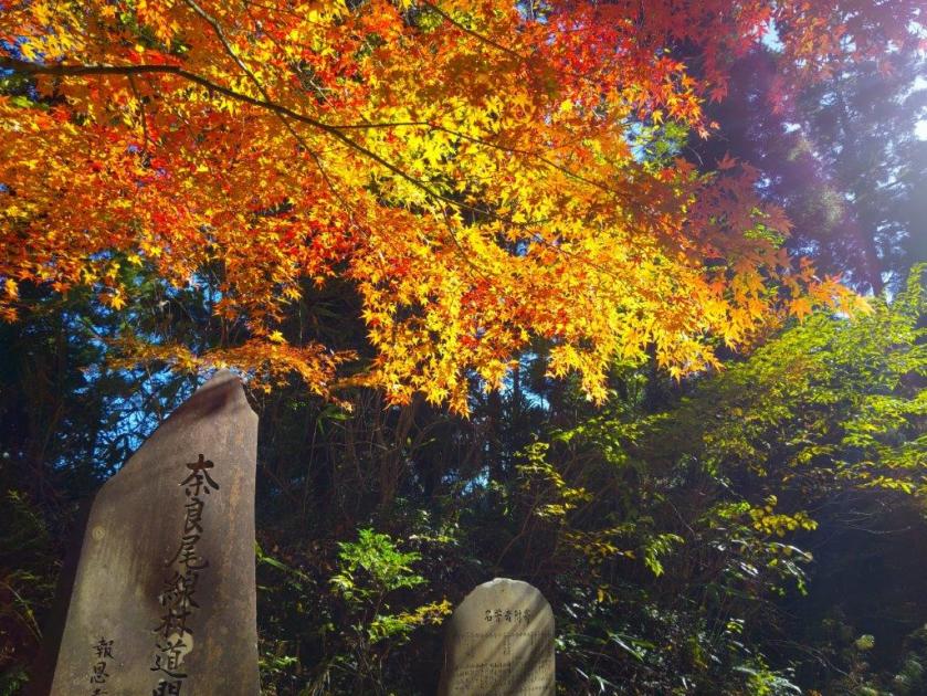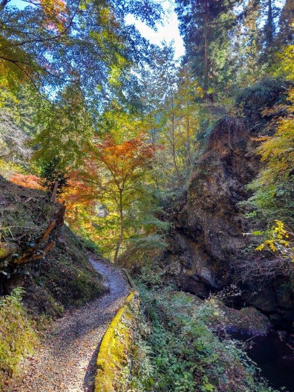 It was a fine autumn day as a I rode the Shonan-Shinjuku line to Honjo station. I drove for about half an hour, reaching Nishoan (二松菴) a little before noon. After a short wait, I enjoyed some delicious handmade soba with tempura. From the restaurant, it was a short drive to the small parking lot near the start of the Inazawa Hiking Trail (稲沢ハイキングコース). After getting ready, I set off just before 1h30, following a road through a small village.