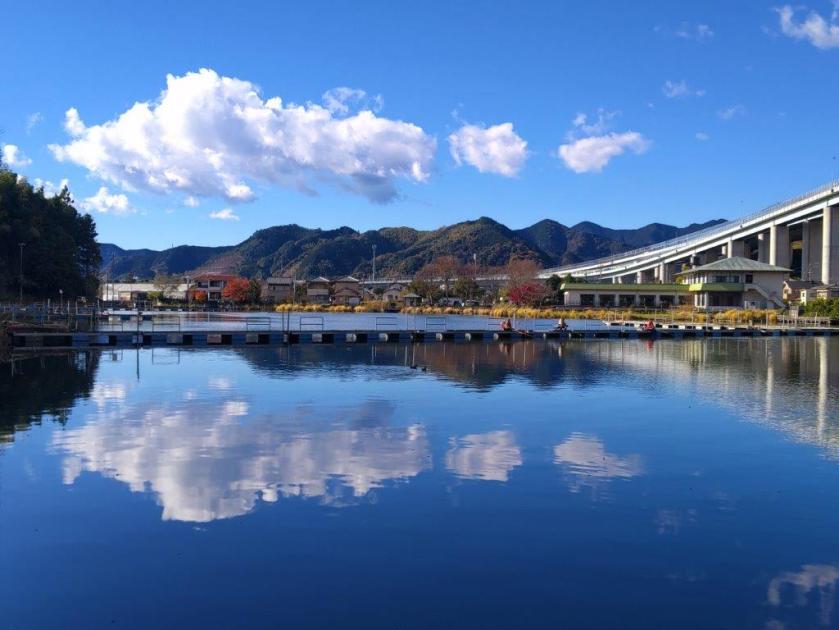 Since there was a bench in the shade of a towering cedar tree in one corner, I decided to take a break for lunch. Opposite was a rusty old train on display, a reminder of a time when a railway ran through the valley; behind me, I could hear the rushing water of the river; on my right, I could see the white bell-shaped flowers of the “Dodan Tsutsuji” (ドウダンツツジ) bobbing in the breeze. At 2pm, I set off again. I soon recrossed the river, and was once again walking along its right bank, arguably its best side, occasionally stopping to admire small waterfalls, slowing the rapid flow of water. As I had expected it remained pleasantly cool, despite temperatures being in the high twenties.
