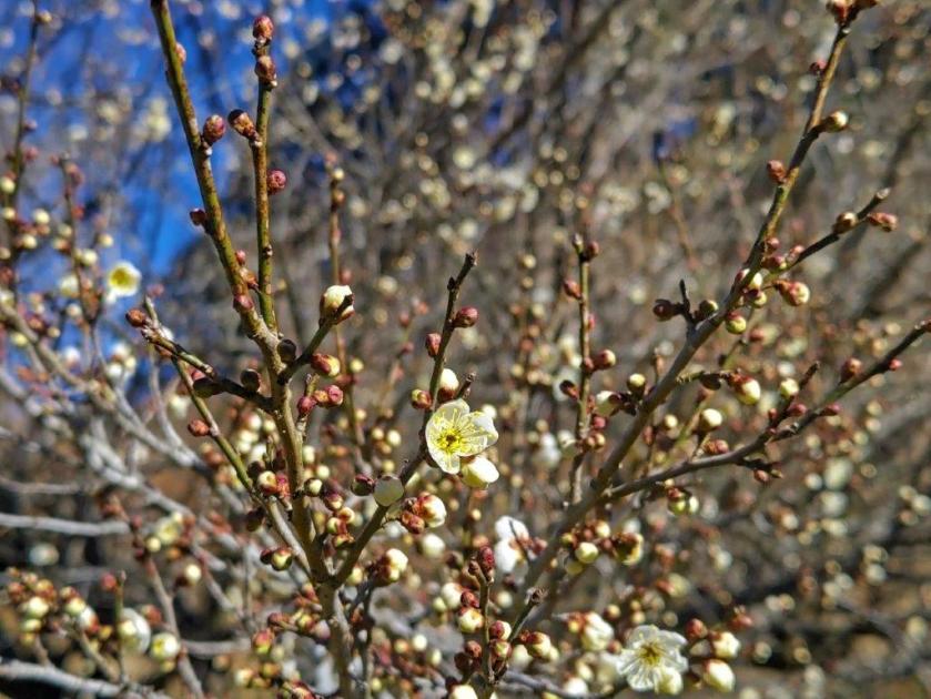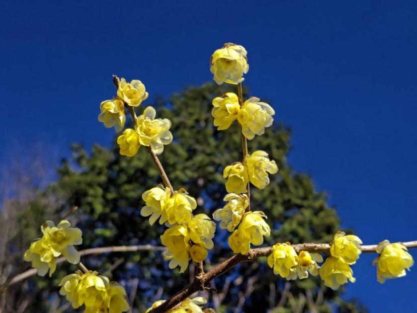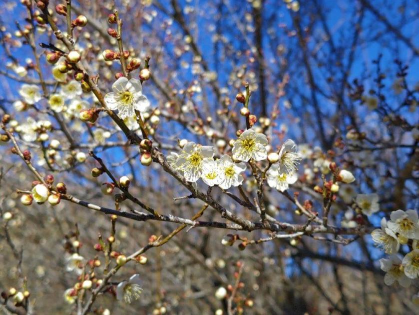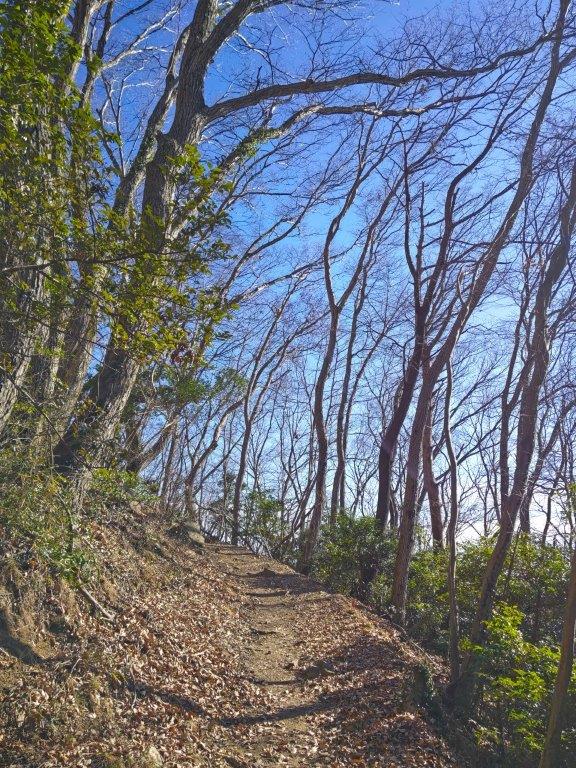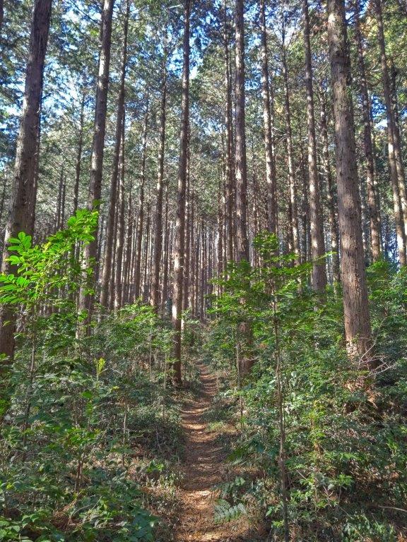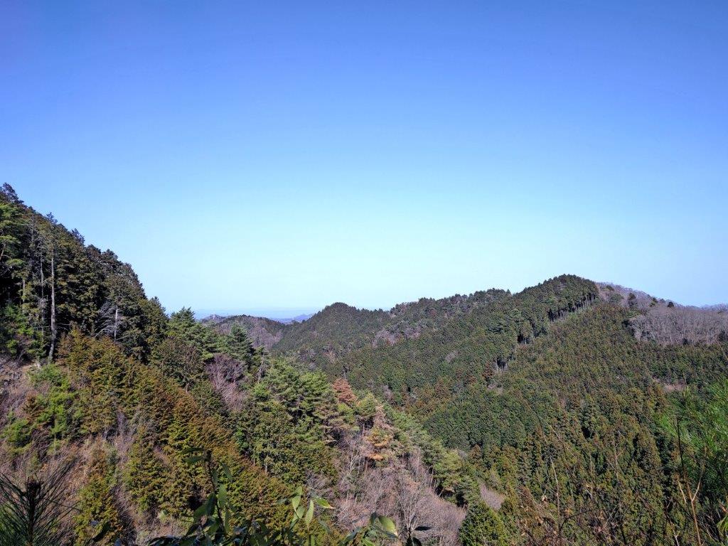 I was grateful to get a good view so early in the hike: looking south, I could see Umijiri Bridge spanning Ojika River, and in the back, Mt Keicho, one of the summits of Mt Takahara; on the north side, was Yunishikawa Lake, with Mt Takase rising behind it; in the far distance was Mt Arakai. I soon continue along a well-defined path, passing an open shelter on the left side. I was surrounded by the bright green of new Spring, but as I gradually gained altitude, I reentered an area of bare branches, creating fantastical shapes against the blue sky. Branches swaying in the light breeze created the only sounds, as birds had not yet returned from their migratory trips.