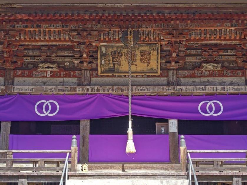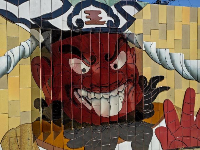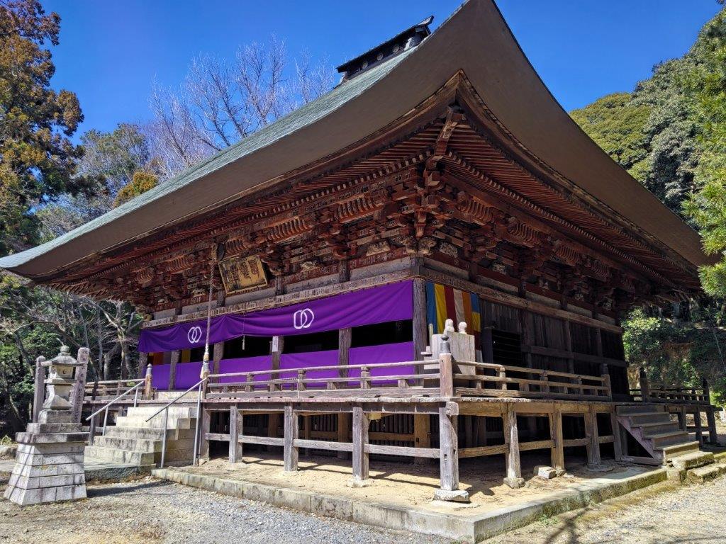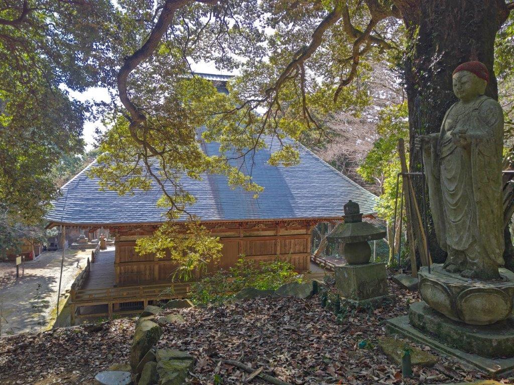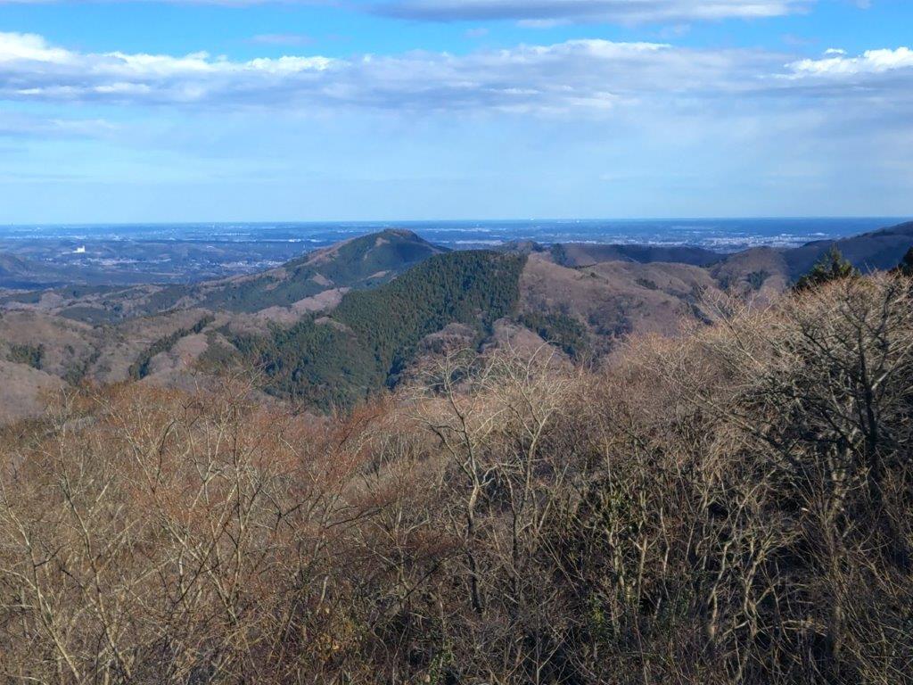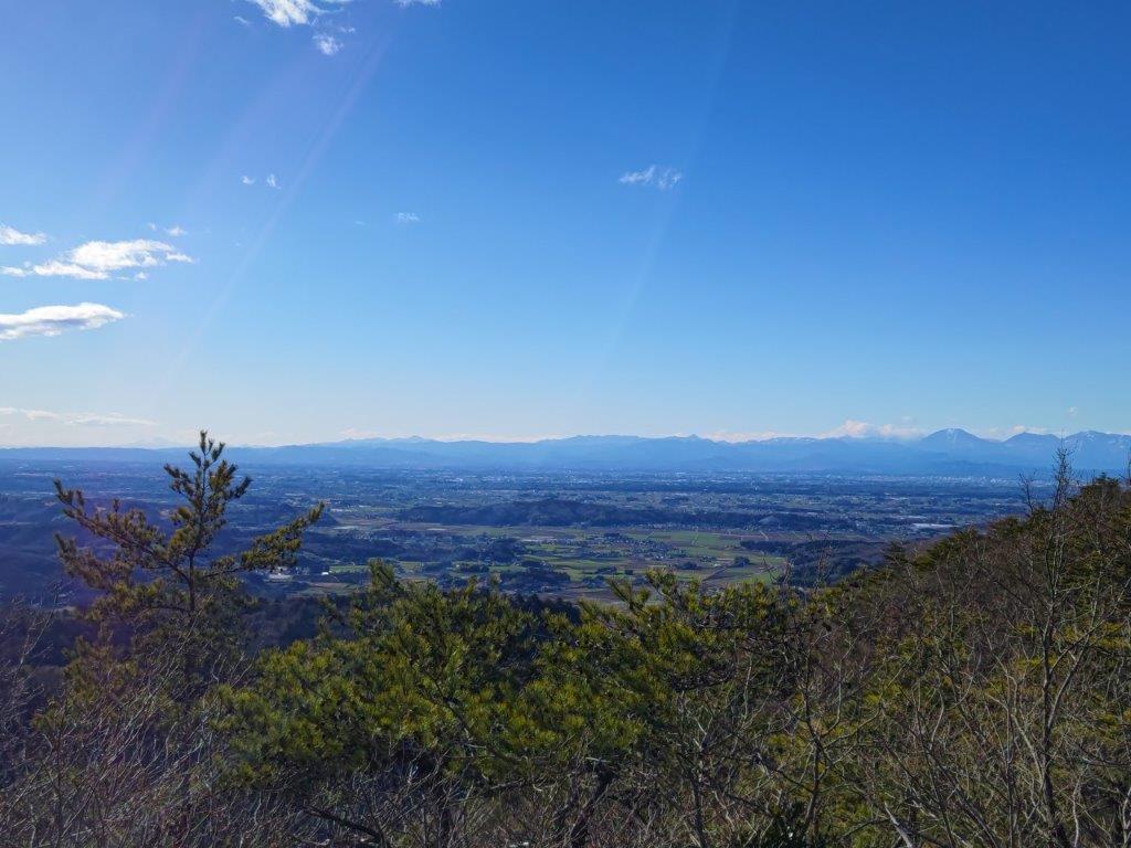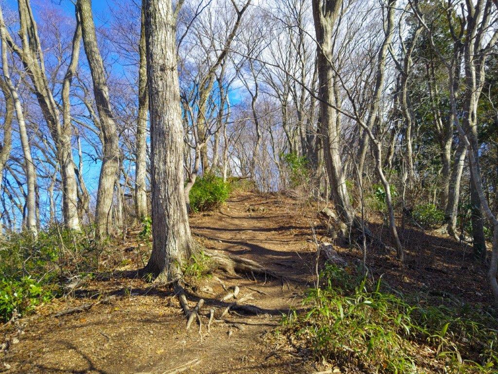 I took a moment to enjoy the view of the mountains of Tochigi, the only recognisable peak being Mt Gassan on the right side. One of the interesting aspects of this hike is the sight the of the wooden figures of the 7 Lucky Gods (“shichifukujin” 七福神) placed along the trail. I now passed Daikokuten (大黒天), the God of Wealth, one of the more popular ones. A few minutes later, just before 2pm, I reached an open shelter at the top of Mt Katsuro (葛老山 かつろうやま katsurou-yama), a 100 famous mountain of tochigi. Through the branches on the west side, I could see Mt Tashiro; on the north side, I had a double lake view, Yunishigawa lake on the left side, and Ikari lake on the right side; to the northeast, I had a good view of Mt Hiruga. I sat next to the statue of Jurojin (寿老人), the God of Longevity, for a late lunch.