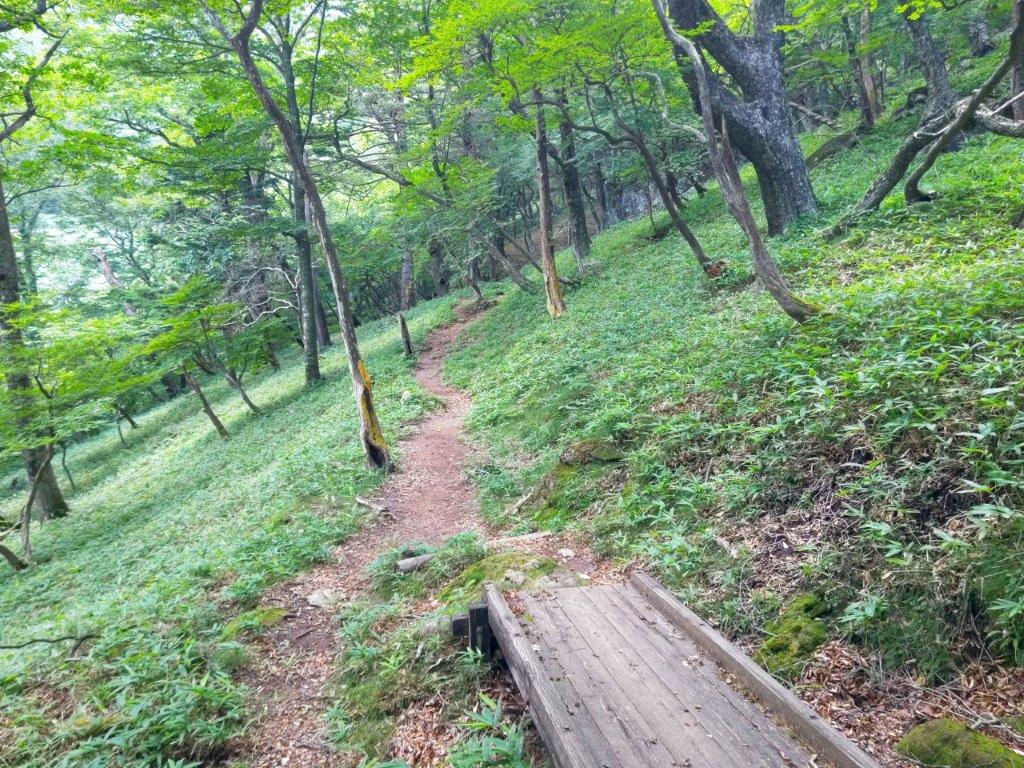 Ever since climbing Mt Gassan, I had been hoping to do another hike along the Aizu-Kinugawa line, deep inside the Nikko National Park but well off the tourist trail. Looking through my guidebook, I found a suitable mountain, its trail entrance near a train station. Although the summit was in the trees and mostly up and down the same way, the path seemed to be well-maintained with no tricky sections; along the way, it was possible to get views of 3 different lakes.