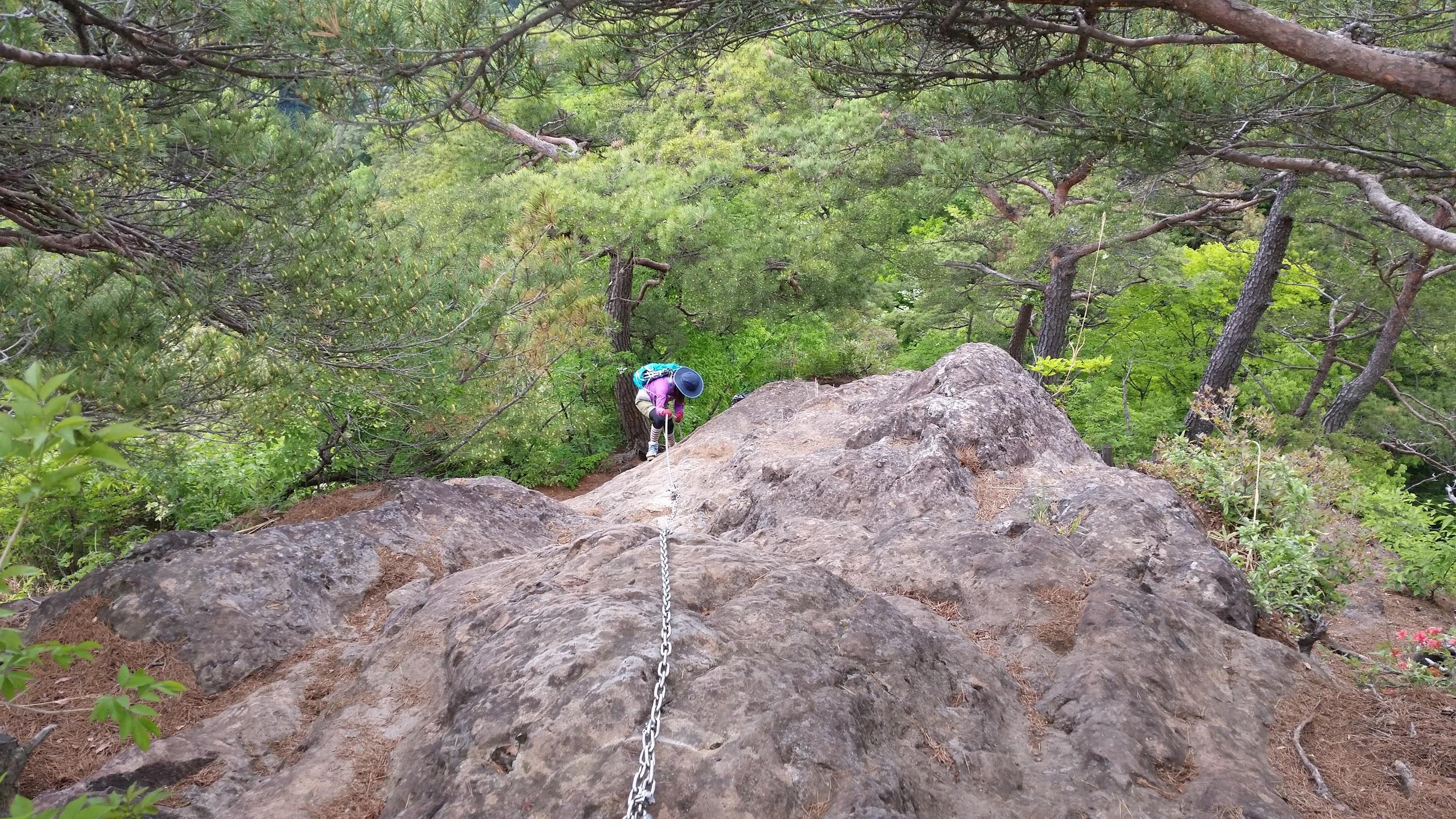 I reached the start of the trail around noon – there was a well-made sign in Japanese and English explaining that the Kiryu River had been selected as one of the top 100 forested valleys in Japan – I wasn’t aware that such a list even existed! There are two trails up the mountain – the one on the left following a small mountain stream is the more challenging one. I took the more direct trail going up the ridgeline. This trail had its share of fun, with rocky sections lined with ropes for safety – it’s not really dangerous, but it isn’t for beginners either.