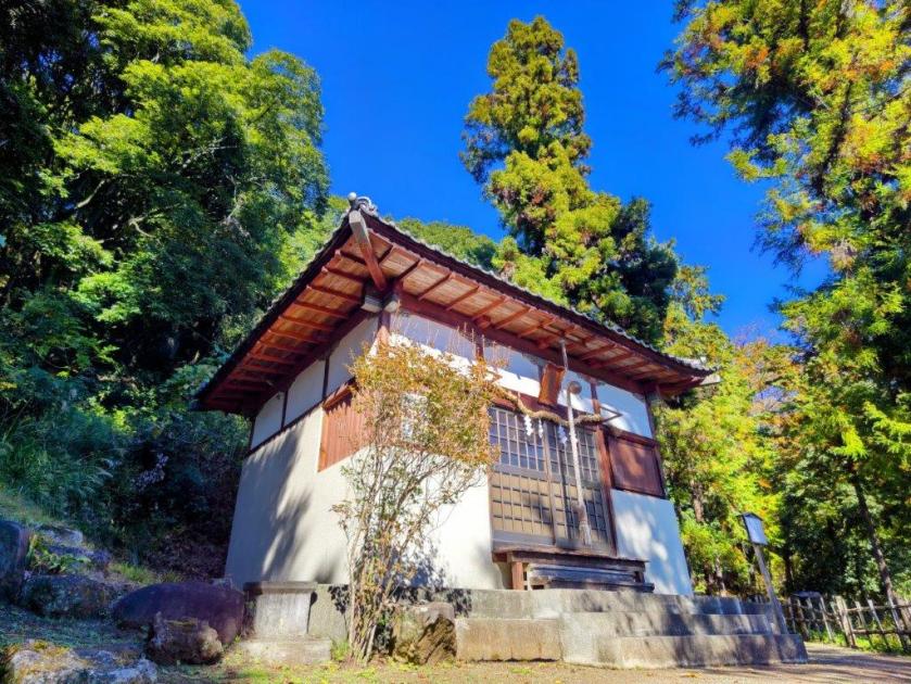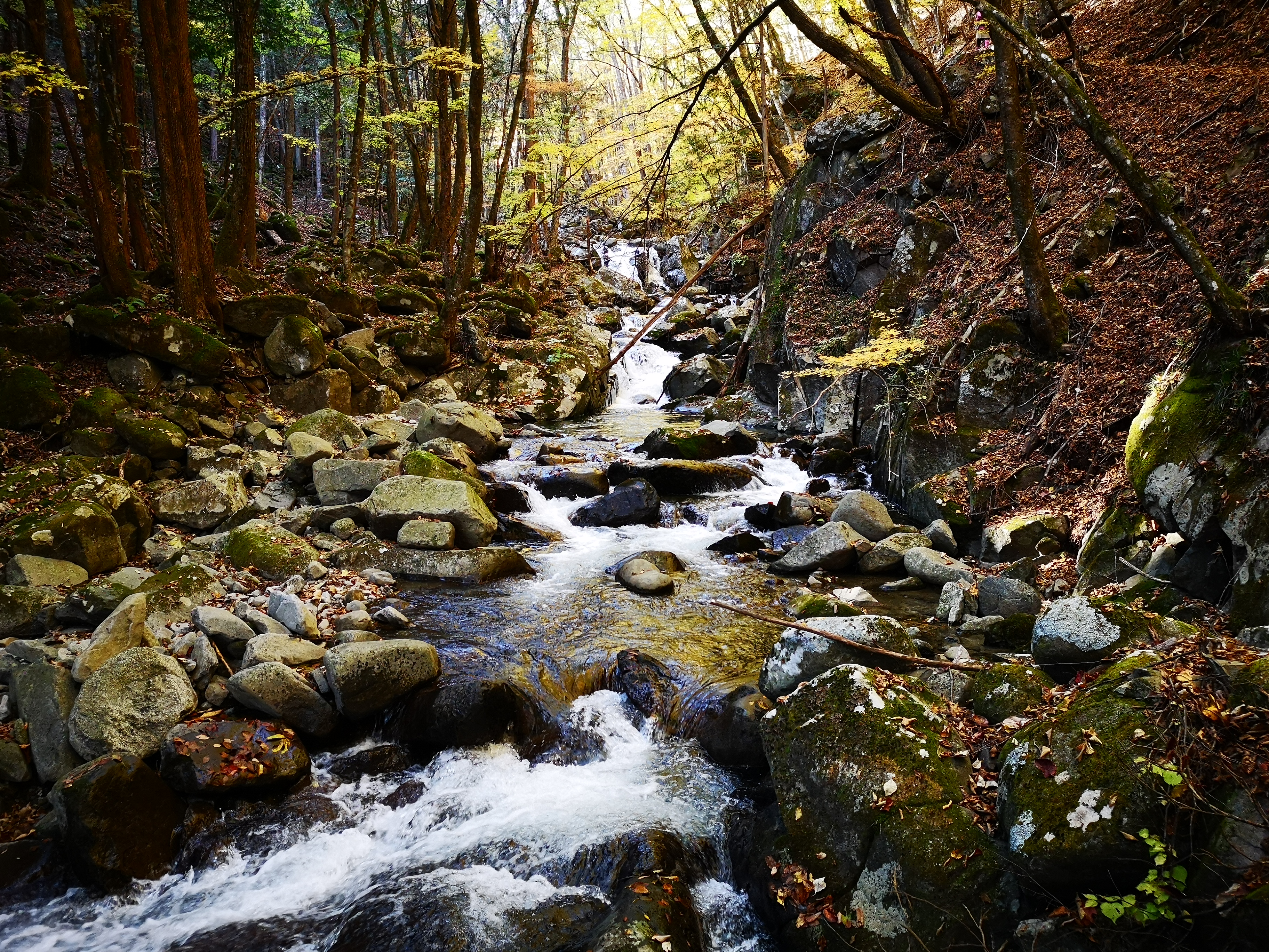 It was a cloudy morning as I left Tokyo but after entering the Kofu Basin, I was greeted with blue skies and a view of the South Alps, still clear of snow. I arrived at Kofu station just after 10am, and after standing in line waiting for the “Green Line” (グリーンライン), felt lucky to be seated on the crowded bus for the fifty-minute ride to Shosenkyo-Takiue, five minutes on foot from the Shosenkyo ropeway (昇仙峡ロープウェイ). After observing hoverflies busily nectaring at purple Asters and Jorogumo spiders hungrily eating their prey, I set off along the Shosenkyo Line road and away from the various tourist attractions surrounding Sengataki station (仙娥滝駅) at the base of the ropeway. A little before noon, I arrived at a shrine entrance at a bend in the road.