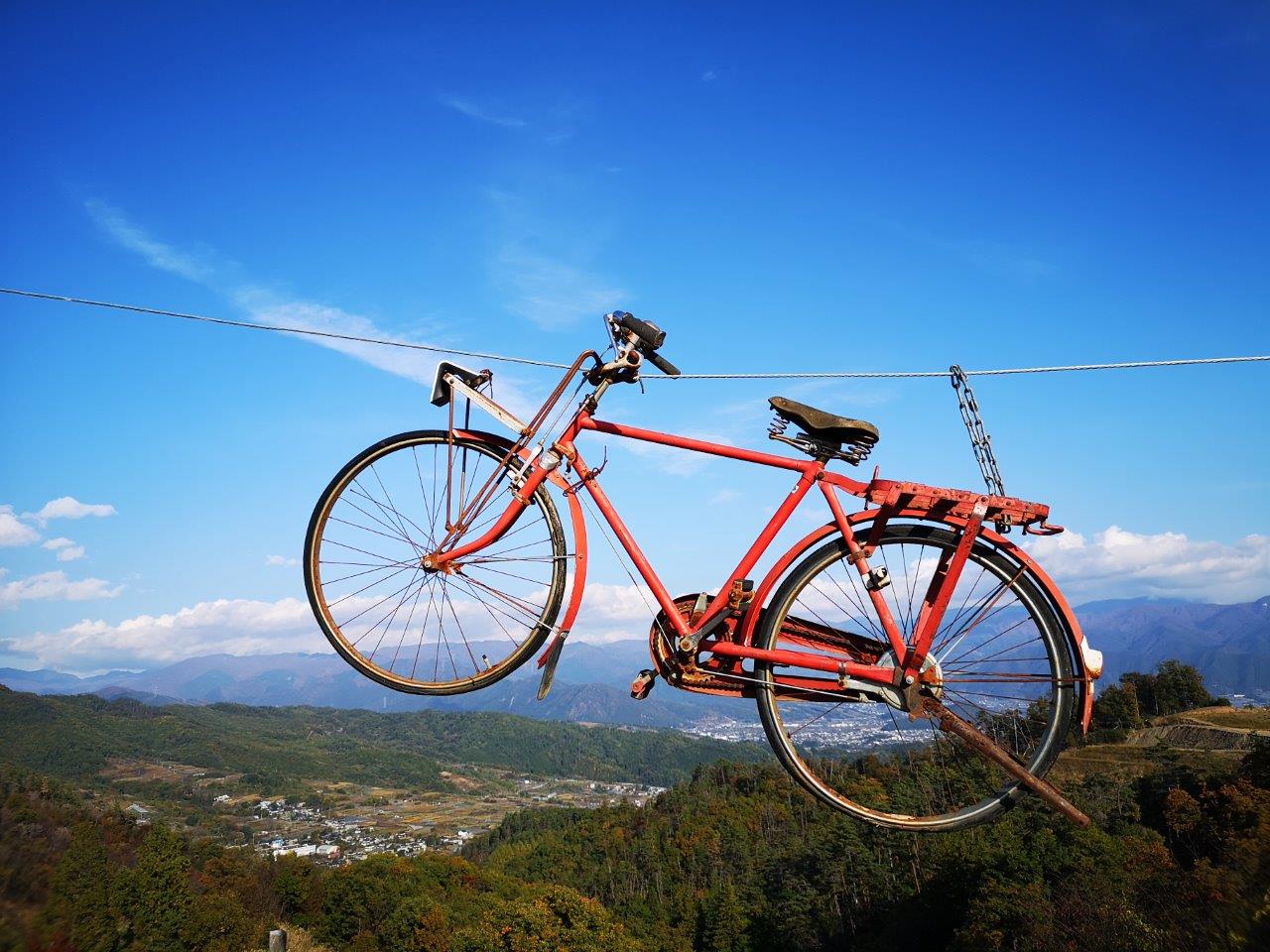 I was impressed by the bright red Shinto gate (“torii”), surrounded by colourful pennants flapping in the breeze, and also by several towering cedars at the top of a steep flight of steps. A small sign propped at the base of one of them indicated it was part of the 100 trees of historical interest in Yamanashi prefecture, although I couldn’t tell whether it was taller than its neighbours. At the top of another flight of steps, I reached the main building of Kanazakura Shrine (金桜神社), another striking bright red structure. On the opposite side was a gravel path with an enticing sign for a nearby viewpoint of Mt Fuji.