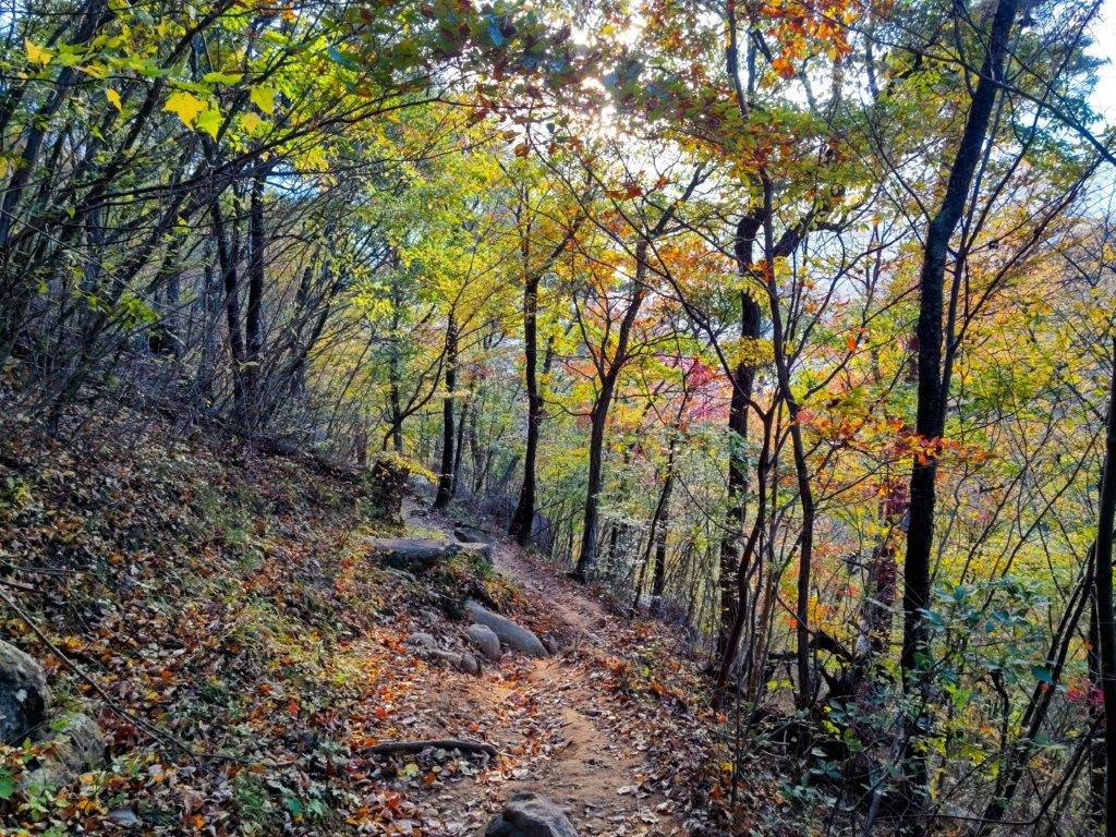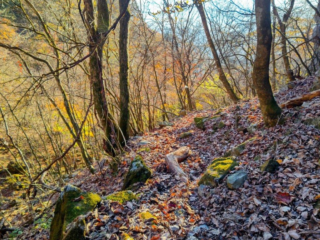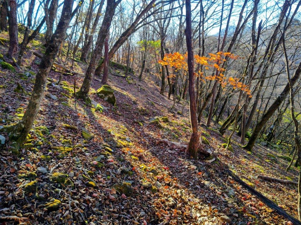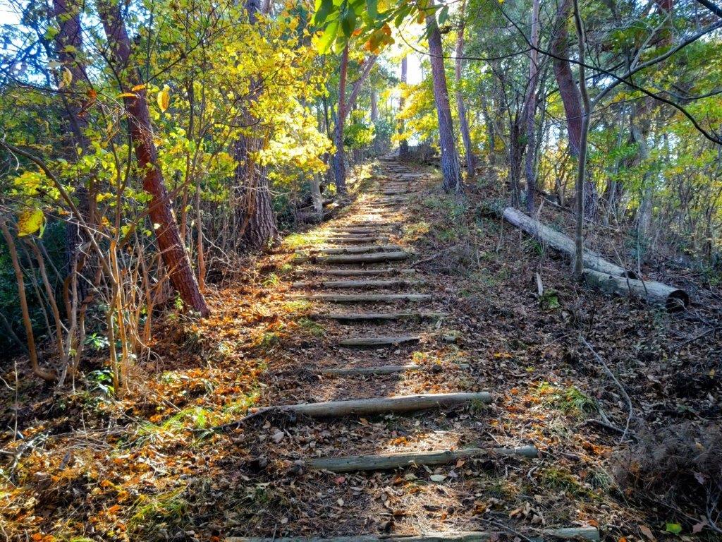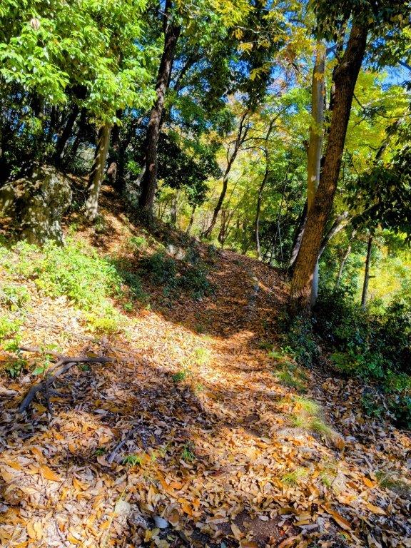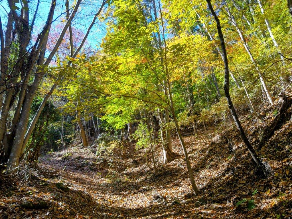 I wondered if I’d reach the base before sunset, quite early at this time of the year. I picked up the pace and around 4pm I reached a junction: the Furusato Nature Observation Trail (ふるさと自然観察路) which I had been following since the ropeway went right; however, I went down the left trail, leaving the ridgeline. Interestingly the signage around this point was a lot more polished than before even though I was far from any sightseeing spots. I also saw no other hikers during this section, possibly because most people planned to visit next month when the Autumn colours would be at their peak.