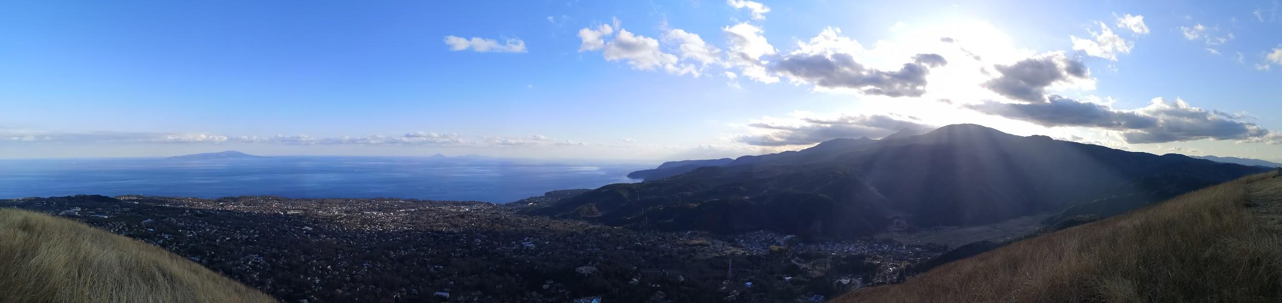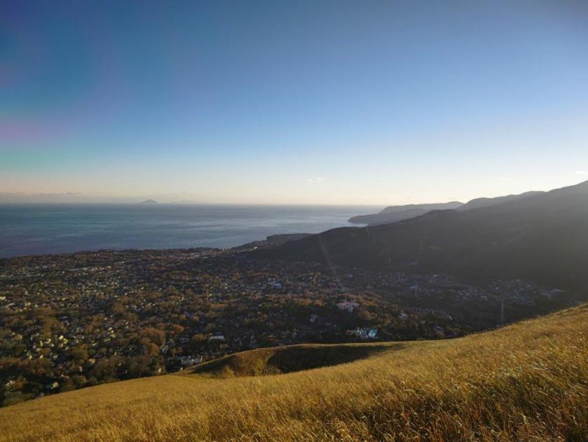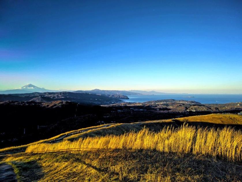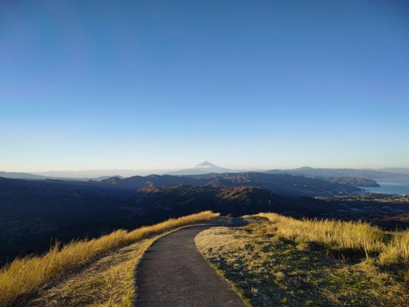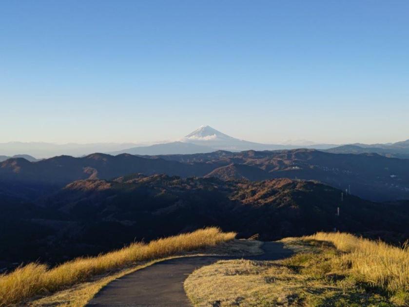 The sun was slowly, but surely, heading for the horizon. I continued my descent, and quickly reached Nakanotake shrine. It was nice to start and end the hike at a shrine. I passed through quickly and got back on the road for the last part of the hike. It took me another hour to get back to my morning starting point. Along the road there were excellent views of some of Mt Myogi and surrounding mountains. The blue skies had returned, so even though the sun had already set it was still light.