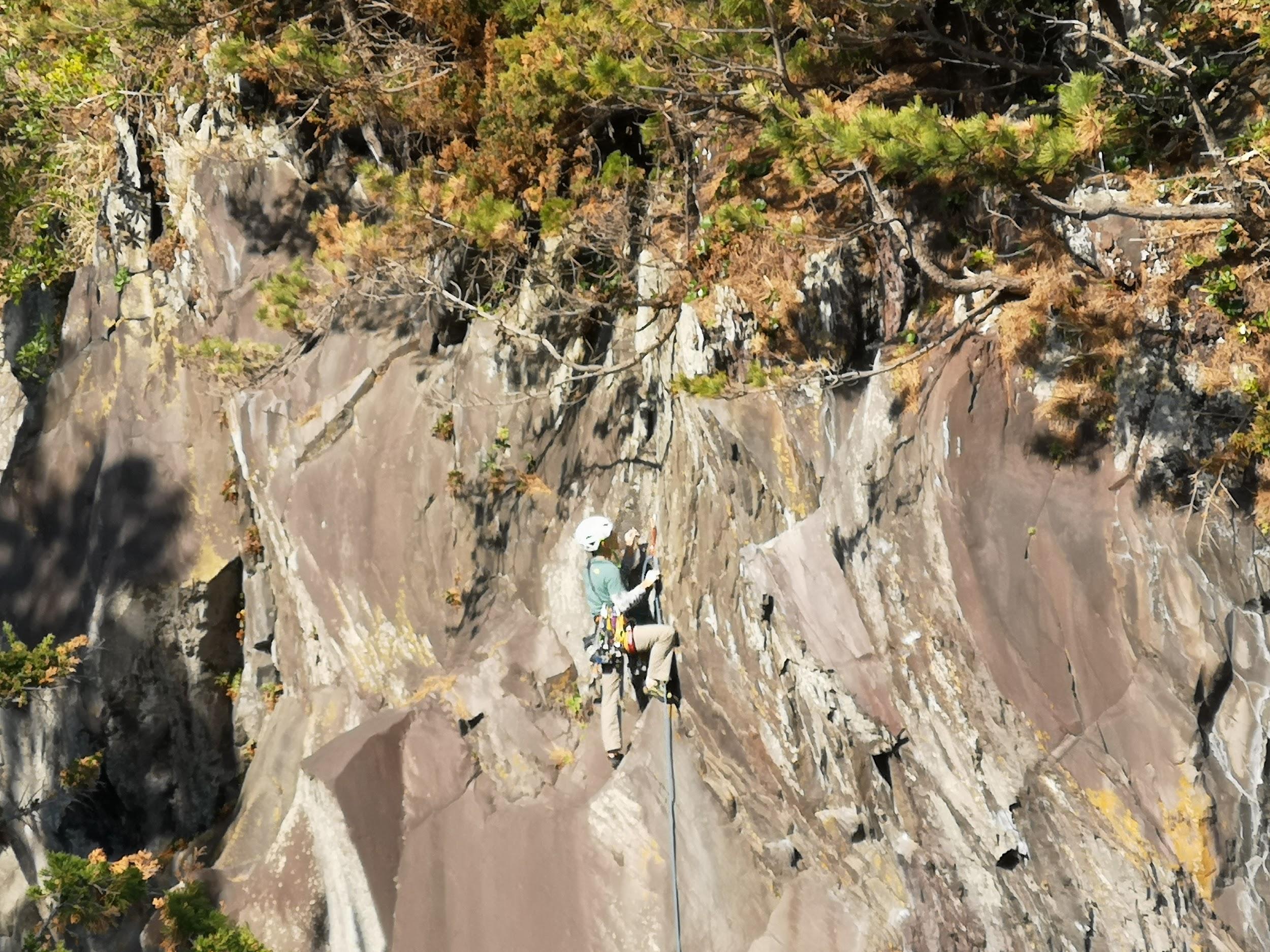 Even though Mt Myogi 1104m (妙義山 myougisan) is a two hundred famous mountain , I didn’t actually climb to the top (I thought about it though). The reason being that despite its relatively low altitude, this is a dangerous and difficult mountain to climb. I used to think that you could walk up every mountain in Japan, chains and ladders being placed in the dangerous parts, and also Mt Tsurugi (in the Northern Alps) was the most difficult mountain to climb in Japan. However, this title probably belongs to Mt Myogi. All the trails to the summit are marked with dotted lines, meaning “experts only” with multiple danger signs and worrying comments added into the mix (“50m chimney – a lot of people have died here”).