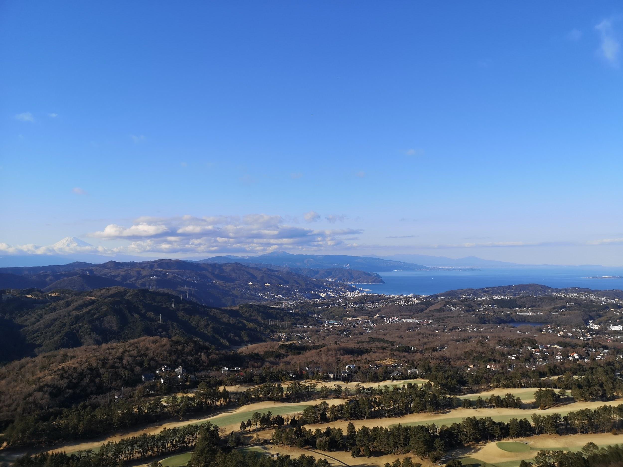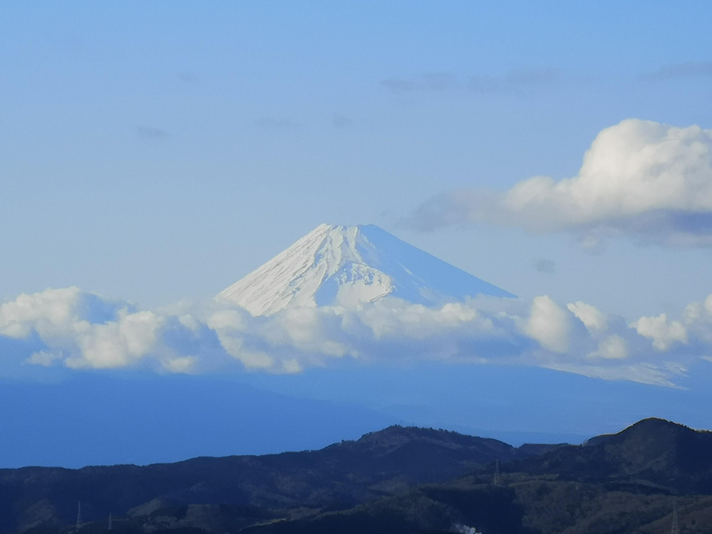 Later on, I arrived at a viewpoint, reached by a series of rocky up and downs fitted with chains. There were more people here since this spot is closer to the other end of the Myogi range, where there is a shrine and a car park. While waiting for my turn to go down the chains, I took lots of photos of the mountains stretching away to the south. There was one especially that caught my eye – Mt Arafune. It had a very long flat top like a table, quite an intriguing sight.