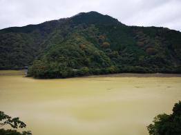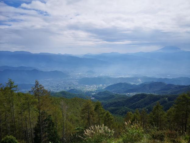 This was my favourite part of the hike. It felt very wild and isolated; it was hard to believe that I was less than 10km from Hon-Atsugi station. I was also surprised that I had never heard about it before; perhaps the locals wanted to keep it a secret. After some descending, and then a short climb via log steps, I reached the summit of Mt Hinata 日向山. Through a break in the trees, I could see the flat expanse of Tokyo. The weather which had been sunny and warm in the morning, was now overcast and windy. I continued along the trail downhill, and soon reached an intersection. I continued straight up the other side to the top of Mt Mijo 見城山, the site of an ancient castle. The view was much better here; below was Nanasawa onsen, and the forested hills separating it from Tokyo.