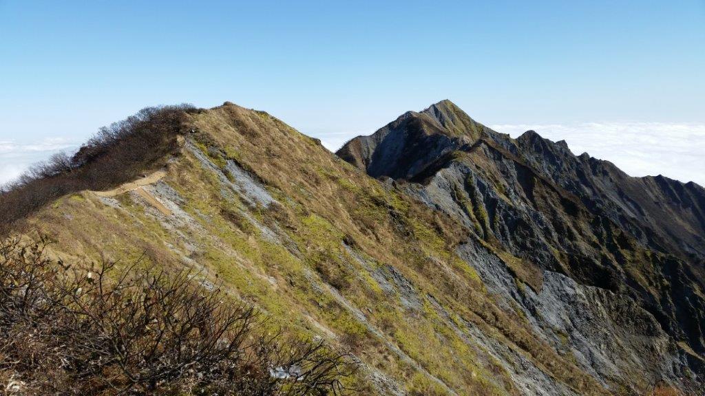 I was finally able to start hiking just after 11am. At 1600m the snow was already getting heavy and wet, and any hiking below that point was bound to be unpleasant. I took the ridge trail leading straight up to the summit. Under the trees, it was enjoyable to hike on the snow, made compact and firm by the footsteps of previous hikers, and on the rocky sections higher up, the snow had completely disappeared from anything in direct sunlight. There was no ice, and crampons weren’t necessary on the ascent although I had light ones in my pack, and several people were using them, mainly for going down. The views of Mt Fuji and the entire range of the South Alps were stunning. I had been to Daibosatsurei before but the views hadn’t been anywhere as great.