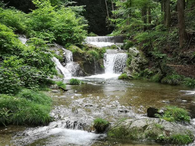 It was getting late, so I decided to skip the last part of the hike to Kaiishi Shrine, and head directly to the train station. I recrossed the Naka river, and followed the road till I reached the Ryumon falls 龍門の滝 just after sunset. After admiring the falls, I made my way to the nearby and appropriately named Taki station (meaning waterfall station) to wait for the local train for Utsunomiya, where I would hop on the shinkansen for Tokyo. In the end there was a little too much road walking for my taste, but I was happy that I was able to summit at least one mountain!