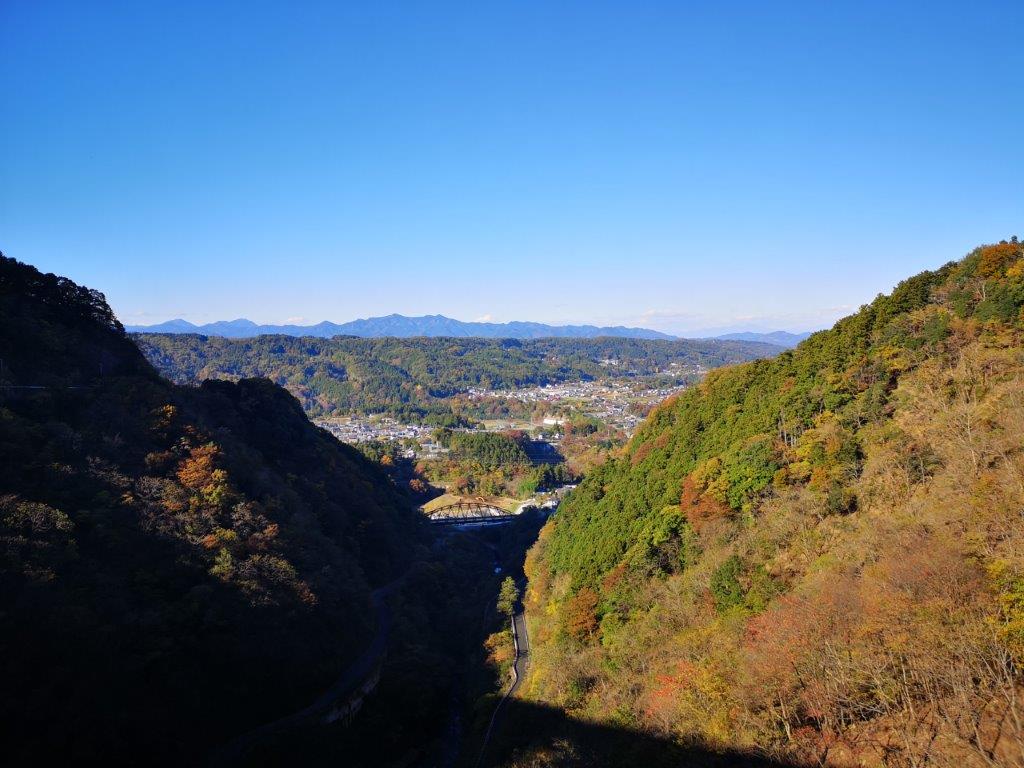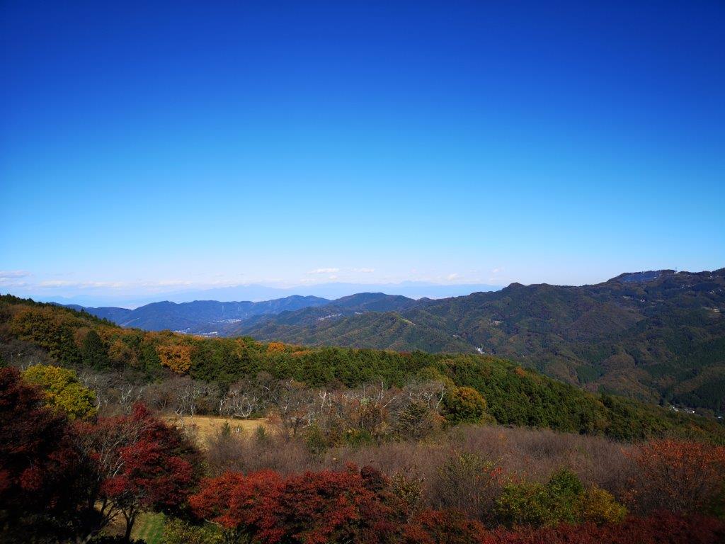 It was a perfect autumn day as I rode the Laview limited express to Chichibu station, where I switched to a rented car. It was a short drive to the parking lot below Minoyama Park, and an even shorter stroll to the highest point of Mt Mino (蓑山 みのやま minoyama). It’s also known as “Utsukushi no Yama” (美の山) meaning “beautiful mountain”, perhaps referring to its round, regular shape, or perhaps to the springtime views, when the many cherry trees are in full bloom.