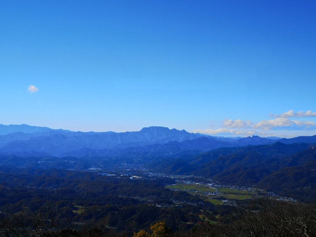 After snapping some pictures, I walked past the summit temple to the other side, where there was the summit marker for Mt Minobu 身延山. I was able to enjoy a great close-up view of the Southern Alps, with the Arakawa-zansan on the left, and the Shirane-zansan on the right, with fresh layers of snow each. Further right was Yatsugatake, in the clouds, and the Oku-Chichibu Mountains, free of clouds. I also had a good view of Mt Shichimen and Mt Fujimi, two mountains I hope to climb next year. Just past the latter was Mt Kushigata which I climbed in June this year.