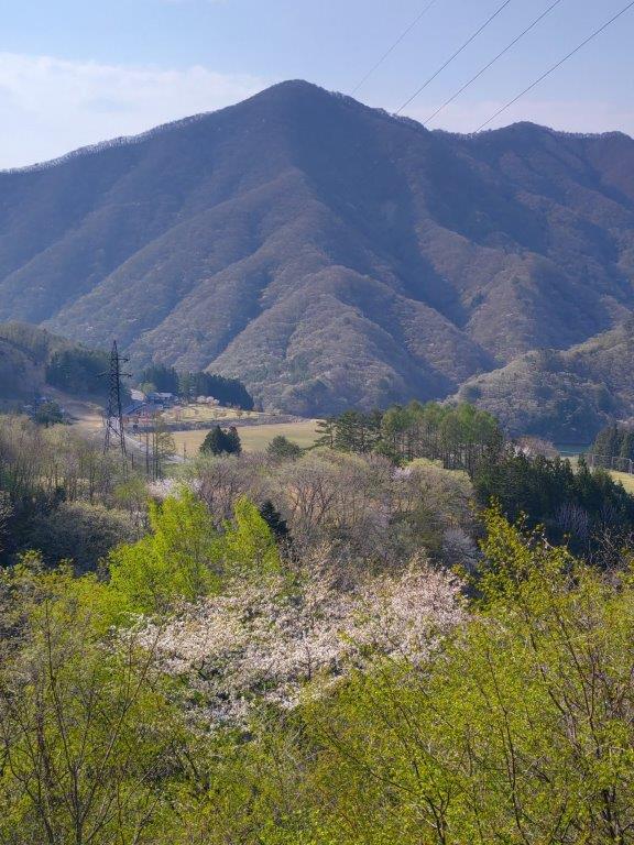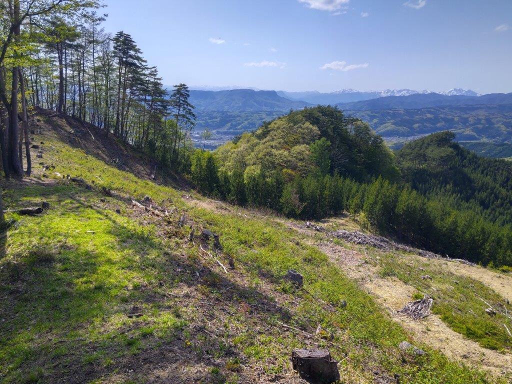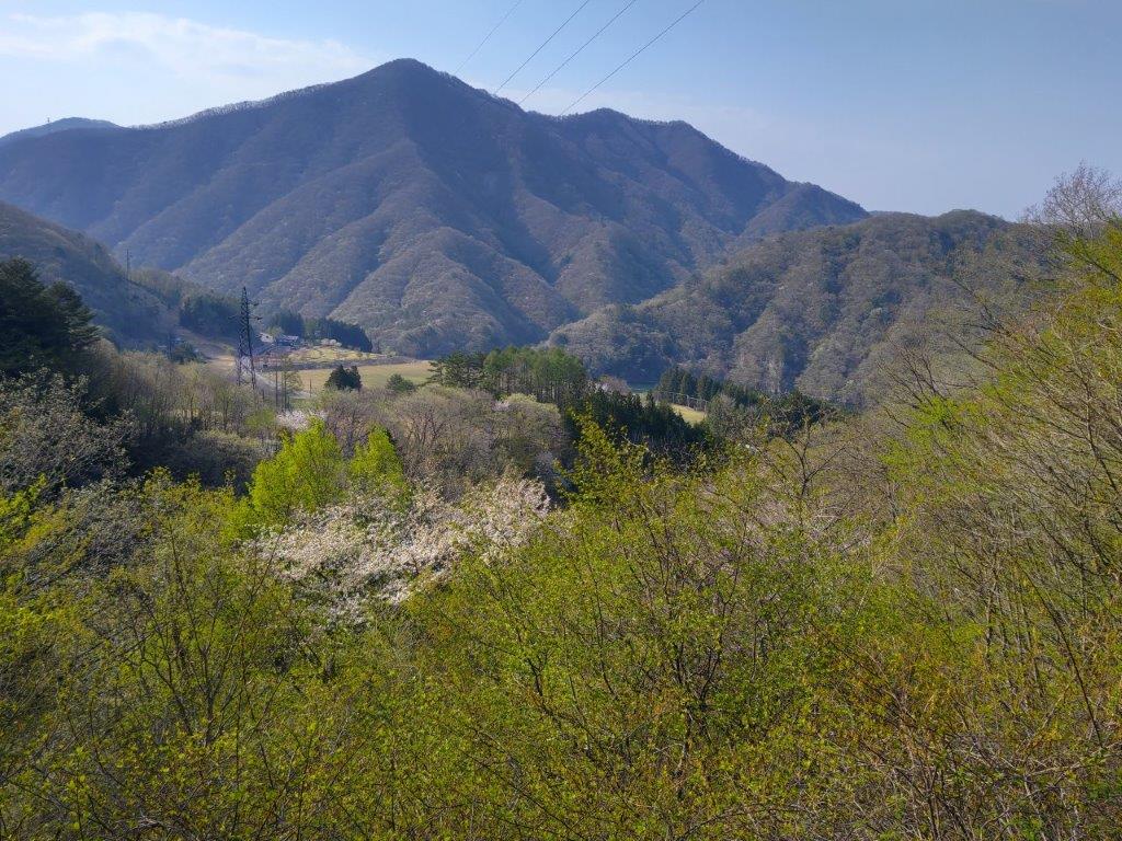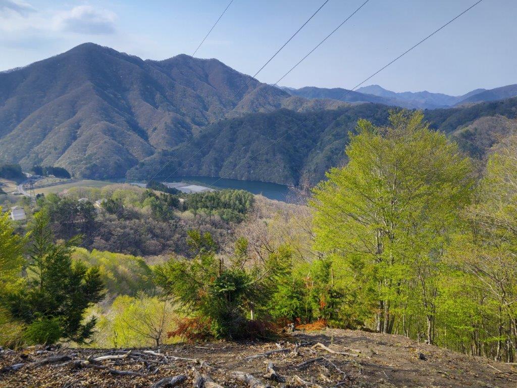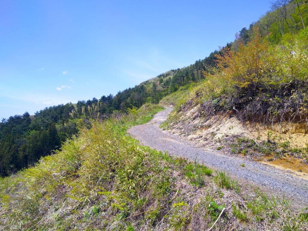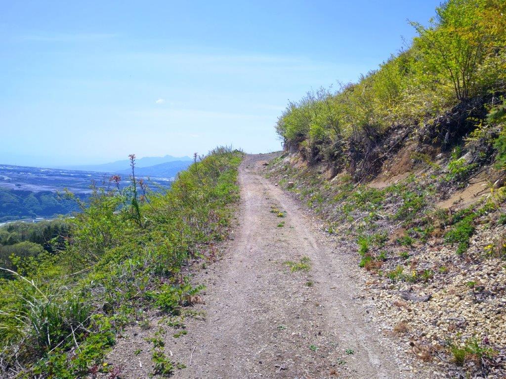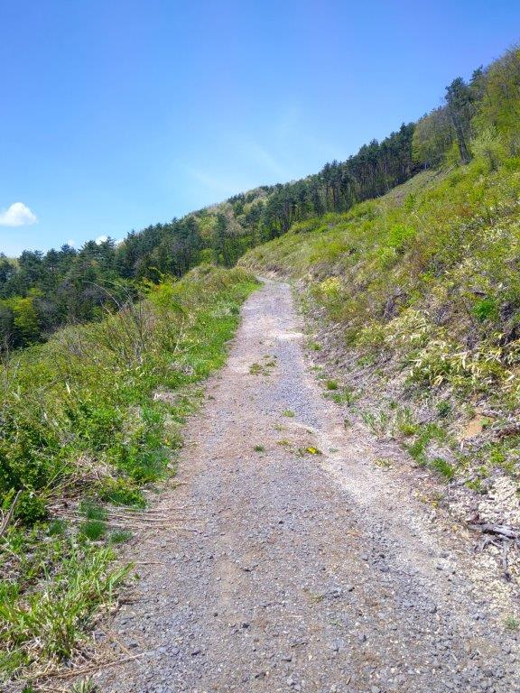 It was a blue sky day as I drove southwards from Kofu station towards the Misaka Mountains (御坂山地). After following a narrow road along the Ashi river valley, I arrived at the Lily of the Valley Flower Colony Parking Lot (すずらん群生地駐車場) just after 11h30. I had to use a smaller parking for hikers since the main one, a little further down the road, was reserved for people using the Twin Terrace Bus. A little after noon, I set off along a faint path starting from the parking lot. After passing a second parking for hikers and crossing a small bridge over a dry riverbed, I arrived at an electric fence beyond which was the start of a well-defined walking path.