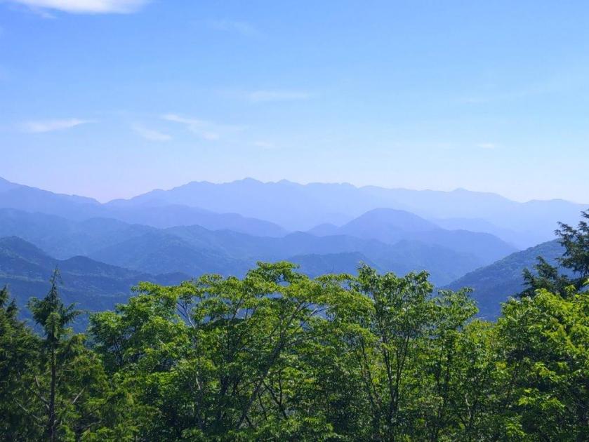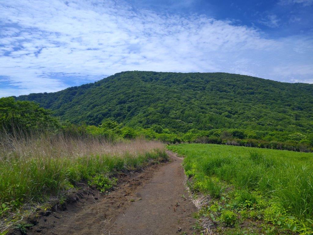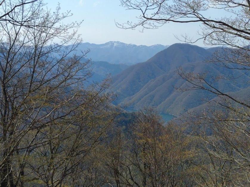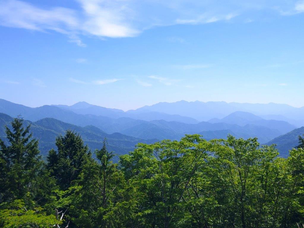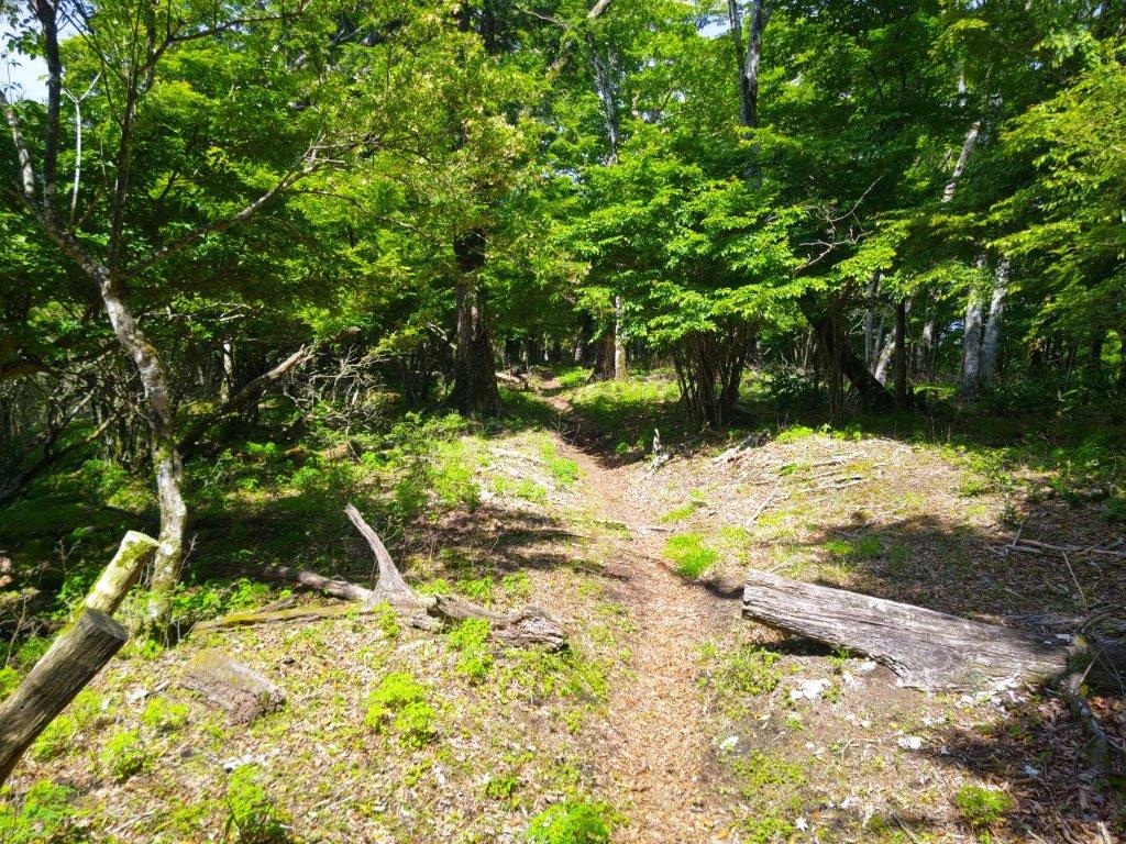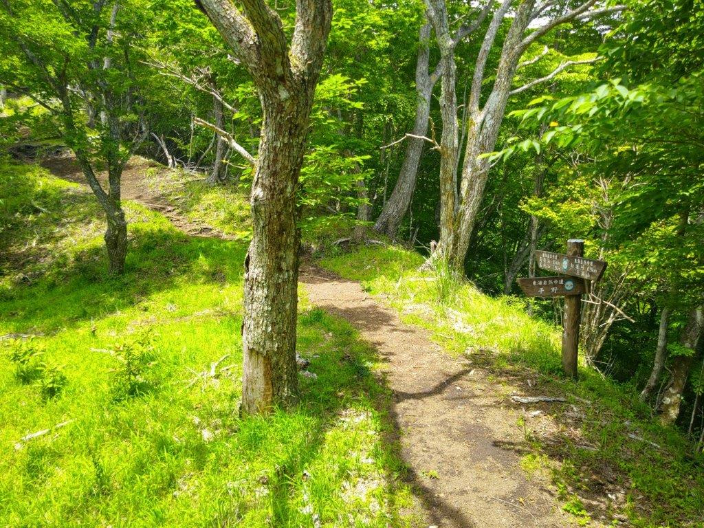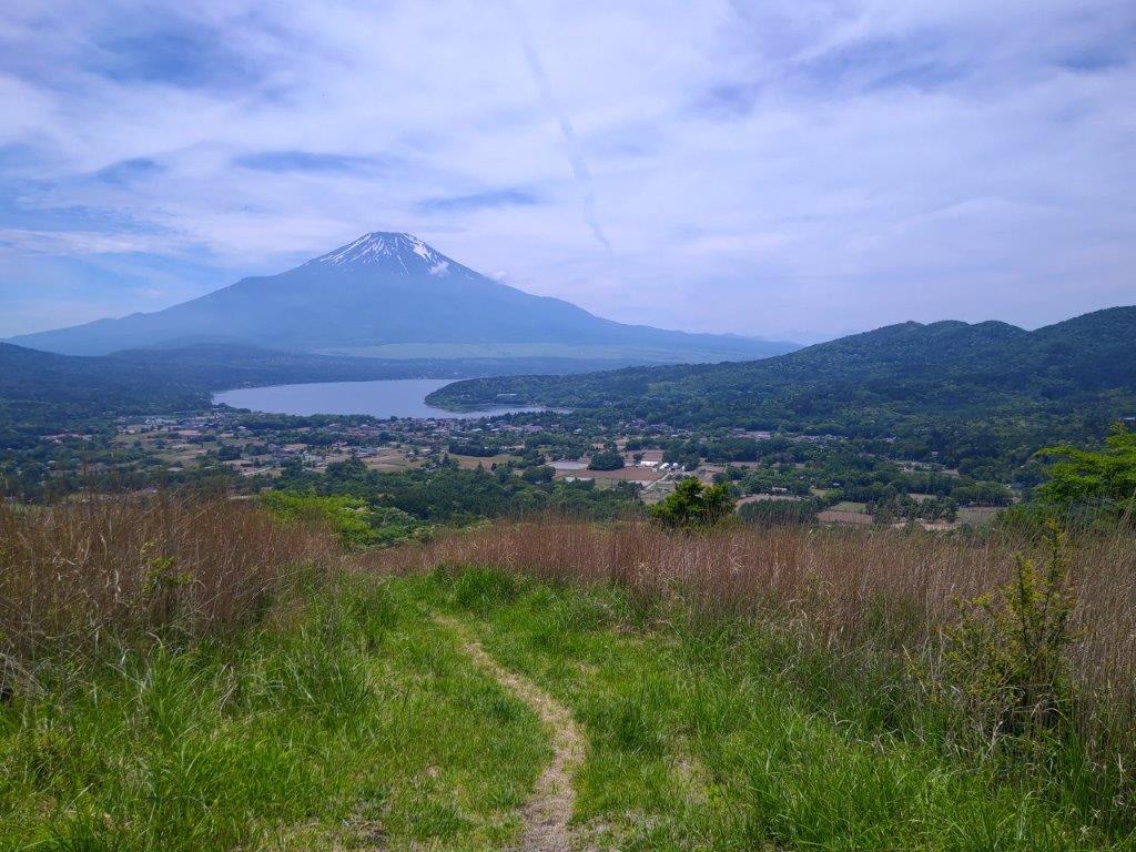 I was surprised to see that thick clouds had rolled in during my ascent, completely hiding Mt Fuji from view. According to the other hikers, I had missed Japan’s iconic volcano by only a few minutes. Looking down, I still had a view of Kawaguchiko lake extending east to west along the base of the mountains. On the right side, I could see Mt Ou and Mt Setto, two other main peaks of the Misaka mountains. I decided to skip my planned lunch break and immediately head to the next summit, in hope that the clouds would have cleared by then. I retraced by steps and headed down a steep path on the west side; beyond Suzuran Pass (すずらん峠), the path became level and easy to walk.
