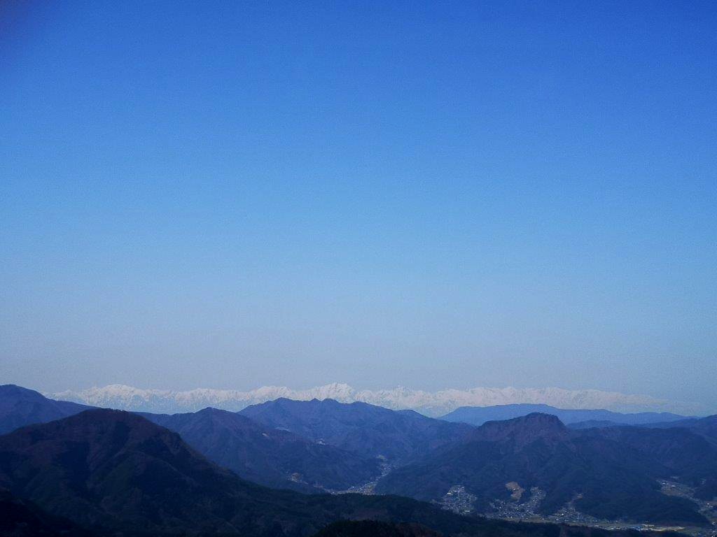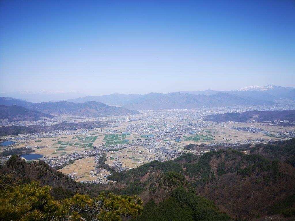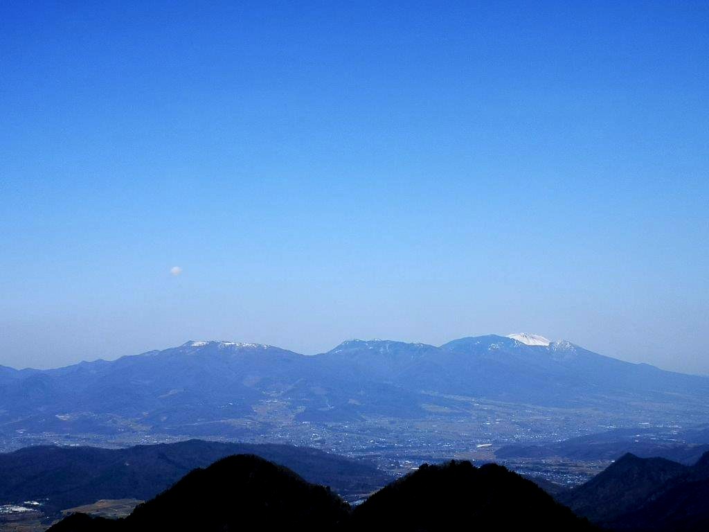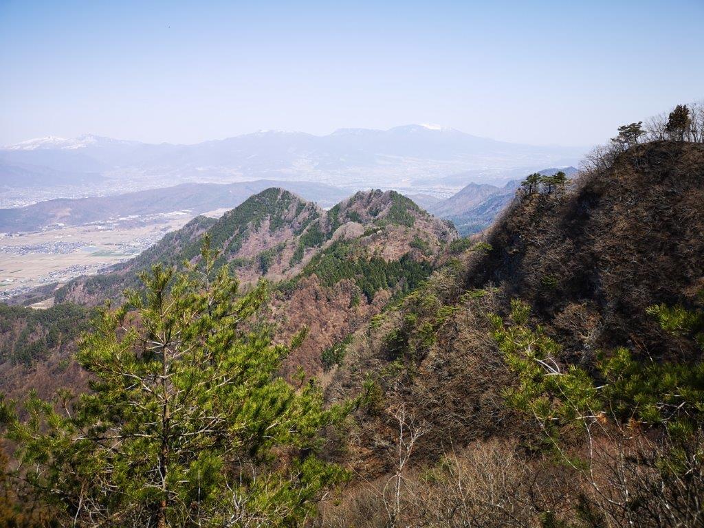The path turned right under some cliffs, the higher parts hidden by the green canopy of the trees ; here and there, I spotted chains used by rock climbers. At 1pm, I arrived at the East Entrance (東口) trail junction and the start of the roundtrip for the summit; I followed the path as it wound clockwise around the steep summit and passed a funny sign informing me that I was at an elevation of 888 meters, read as “Hahaha” in Japanese (ハハハ). Very soon, I was walking through a rocky area with views to the west through the trees; looking down, I realised I was at the edge of a cliff.