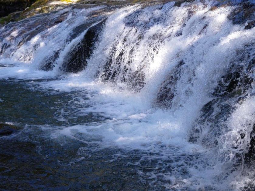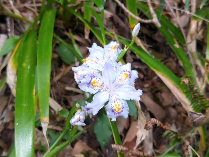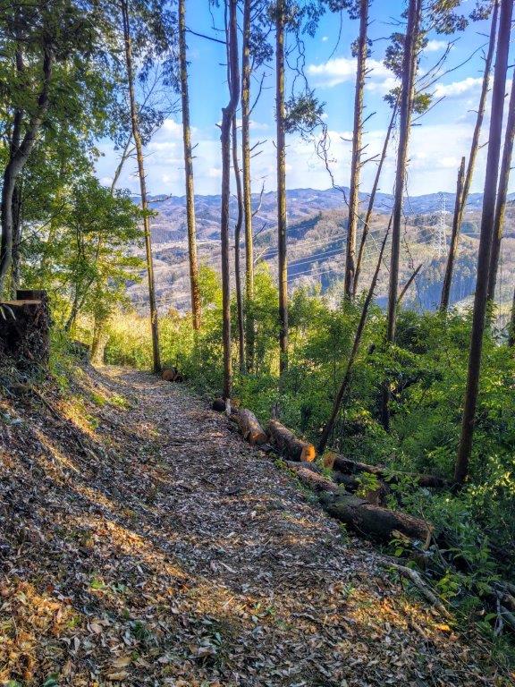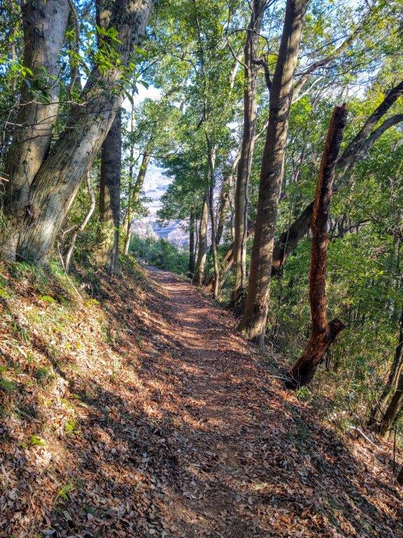 So far I had seen few people but this section was surprisingly crowded, probably because of the current trail closures. A little before 5pm, I reached the top of Mt Takao (高尾山 たかおさん takao-san) for the tenth time. Clouds had already swallowed up Mt Fuji to the southwest but I still had a view of the Tanzawa mountains, an improvement over my last visit. After a short break, I started to head towards the entrance of the Katsura Forest Trail. Although the sun wouldn’t set for another two hours, it was surprisingly gloomy under the cover of the forest canopy, almost a repeat of my previous experience on this path. I quickened the pace, stopping briefly to observe a hairy caterpillar crawl across the trail. I was relieved again to be back on the Kasumidai loop and without hesitation, darted down a wide path signposted for Biwa Falls.