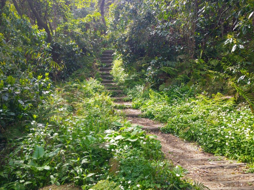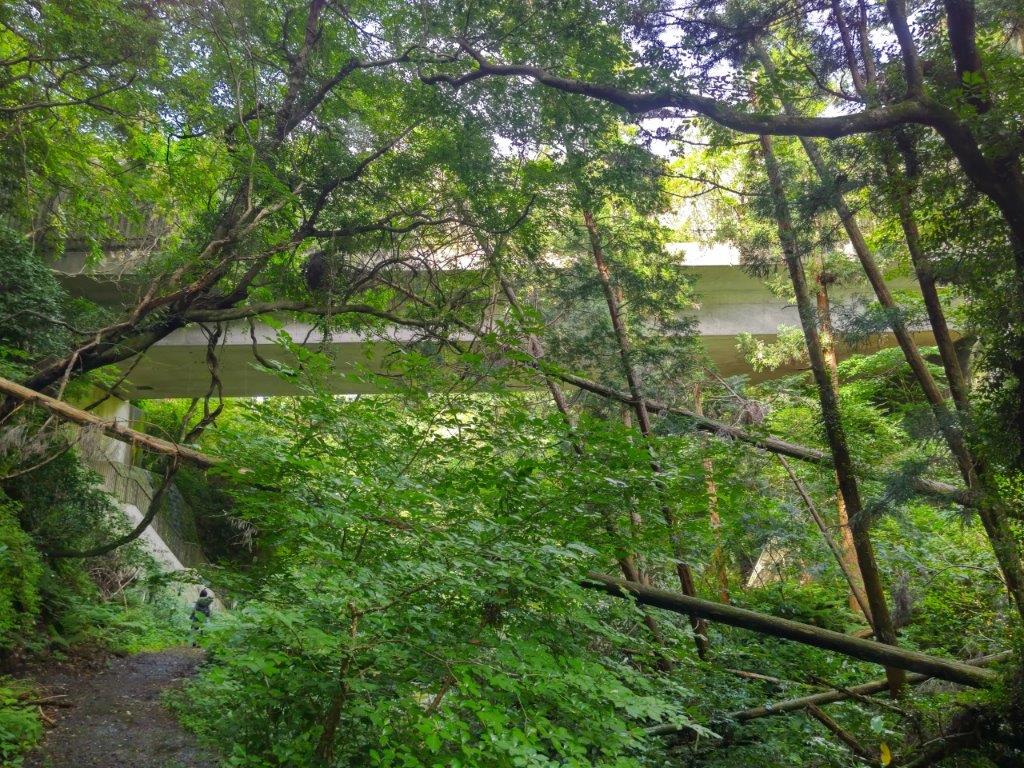 I was surprised to see such a clean river close to the city. At one point, a group of children were noisily playing in the water; nearby a couple of adults were lying in a deeper, narrow section, completely submerged by the cool rushing water. A little further, I reached a bridge where I had a good view of the river itself. As I continued along the trail on the other side, a green-coloured snake slowly slithered away into the bushes. At this point I decided to turn back, and a little after 3pm, I found myself slowly making my way up a paved incline, the start of the 蛇滝線線歩道 (the Jataki trail).