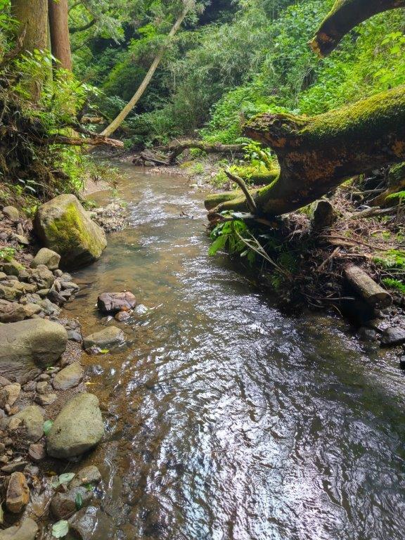 It still felt way too hot for any outdoor activity after arriving at Takao station just before 2pm. I decided to hang out for a short while at Ichigendo, the small cafe attached to the station. Even with the added delay, I started to have doubts about today’s hike as I walked up the Old Koshu Highway (旧甲州街道), the Ura-Takao bridge (裏高尾橋) providing the only shade from the punishing sun. I reached the trail entrance a little before 3pm; to further delay the start of my hike, I decided to check out the Ura-Takao Stream Path (裏高尾渓流線歩道) along the Kobotoke River.
