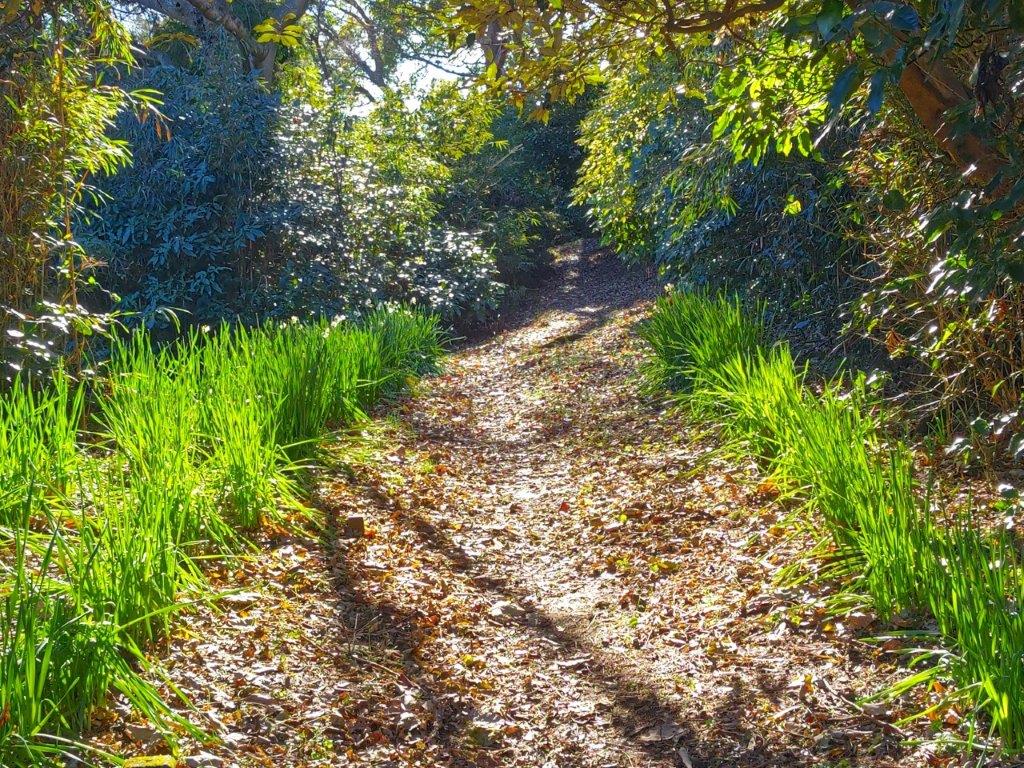 So far I had seen few people but this section was surprisingly crowded, probably because of the current trail closures. A little before 5pm, I reached the top of Mt Takao (高尾山 たかおさん takao-san) for the tenth time. Clouds had already swallowed up Mt Fuji to the southwest but I still had a view of the Tanzawa mountains, an improvement over my last visit. After a short break, I started to head towards the entrance of the Katsura Forest Trail. Although the sun wouldn’t set for another two hours, it was surprisingly gloomy under the cover of the forest canopy, almost a repeat of my previous experience on this path. I quickened the pace, stopping briefly to observe a hairy caterpillar crawl across the trail. I was relieved again to be back on the Kasumidai loop and without hesitation, darted down a wide path signposted for Biwa Falls.