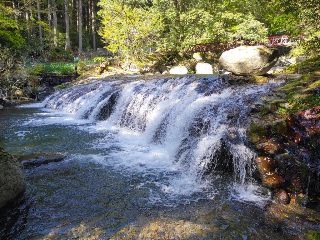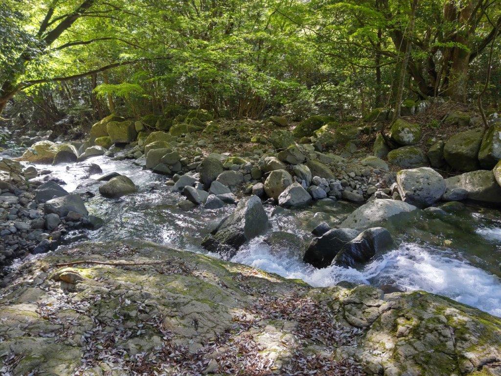 It still felt way too hot for any outdoor activity after arriving at Takao station just before 2pm. I decided to hang out for a short while at Ichigendo, the small cafe attached to the station. Even with the added delay, I started to have doubts about today’s hike as I walked up the Old Koshu Highway (旧甲州街道), the Ura-Takao bridge (裏高尾橋) providing the only shade from the punishing sun. I reached the trail entrance a little before 3pm; to further delay the start of my hike, I decided to check out the Ura-Takao Stream Path (裏高尾渓流線歩道) along the Kobotoke River.