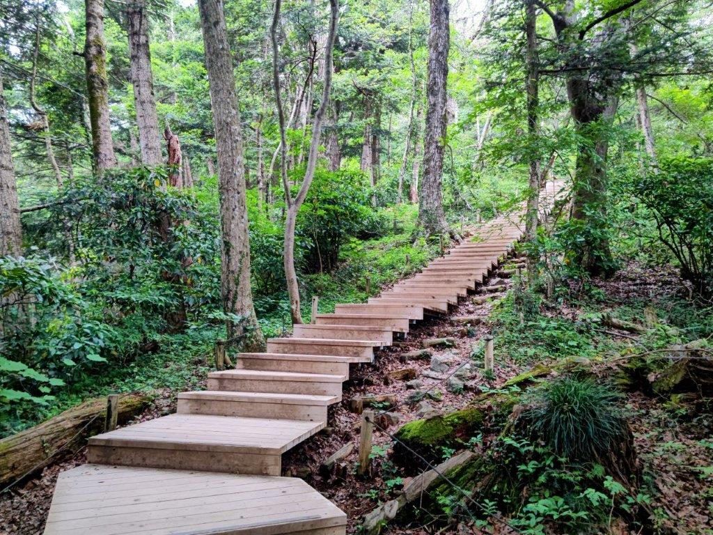 I decided to go up the Jataki falls trail, the only trail I had yet to walk on the mountain; after a quick visit to the summit via the Suspension Bridge Trail, I had originally planned to descend via the Biwa waterfall trail. However, due to the current restriction (see below), I decided to head down the Katsura Forest trail instead; from the ropeway top station, I’d then follow a connecting trail down to Biwa Falls, allowing me to complete a waterfall to waterfall hike.