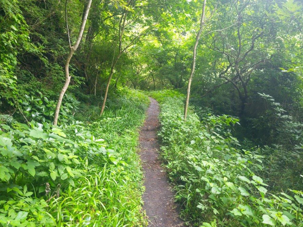 I was surprised to see such a clean river close to the city. At one point, a group of children were noisily playing in the water; nearby a couple of adults were lying in a deeper, narrow section, completely submerged by the cool rushing water. A little further, I reached a bridge where I had a good view of the river itself. As I continued along the trail on the other side, a green-coloured snake slowly slithered away into the bushes. At this point I decided to turn back, and a little after 3pm, I found myself slowly making my way up a paved incline, the start of the 蛇滝線線歩道 (the Jataki trail).