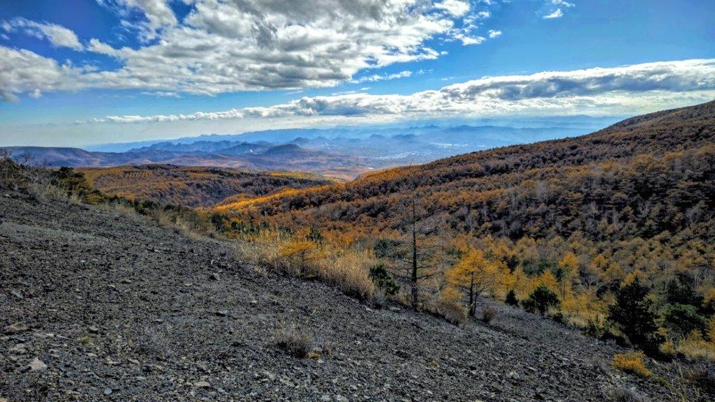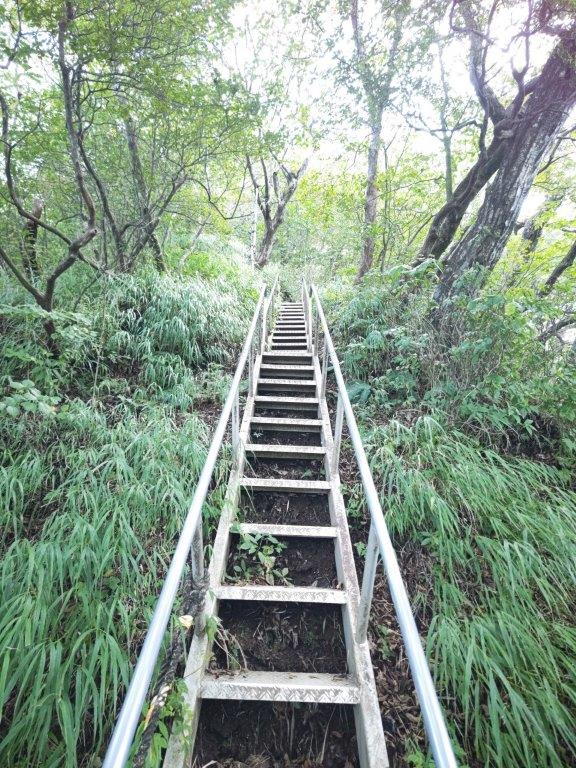 At 10 o’clock I finally set off. I found the start of the trail indicated by a signpost near the bus stop. Very soon I reached some steps going straight up the mountain side. They were so steep that at one point it felt like a ladder would have been more appropriate. Thankfully it didn’t take long to reach the top of the ridge, after which it was pleasant stroll along a mostly level trail to the top of Mt Byobu 屛風山, part of the outer crater rim of Mt Hakone.