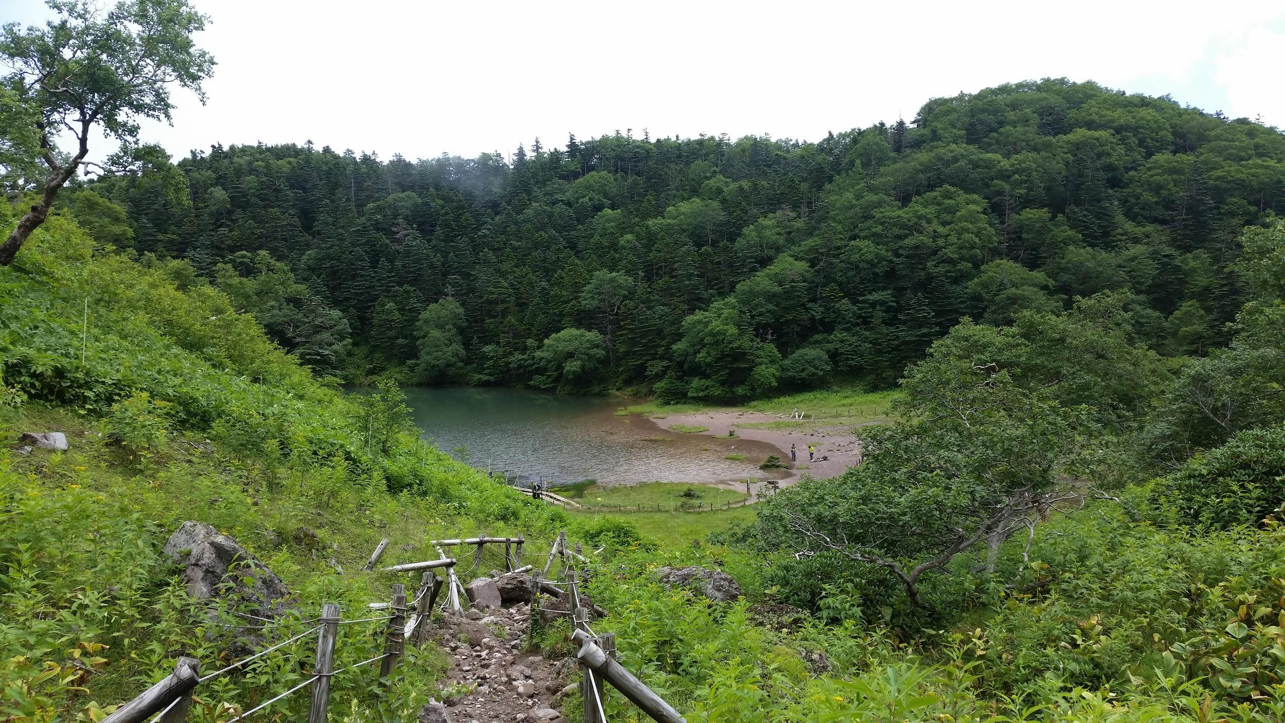 Around 1h30, I emerged onto a road, but I soon turned left onto a small trail to Johotsuganji Temple. At this point, I had left the Fureai no Michi. After about ten minutes, I arrived at a small cave at the base of a cliff. It contained some Buddhist statues, and from the croaks I was hearing, some frogs as well! The trail continued up the mountain, along a ridge crisscrossed with tree roots, making it a little difficult to follow. Before reaching the highest point, the path turned right and followed the side of the valley. Here the path showed signs of maintenance, and was much easier to follow. Around 2pm I reached an old bench, a good place for a break and a late lunch. There was no view, but the surrounding was very peaceful save for the chirping of birds. The path continued, along a level ridge extending northwards.