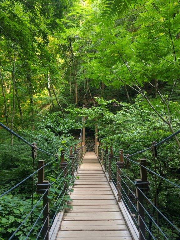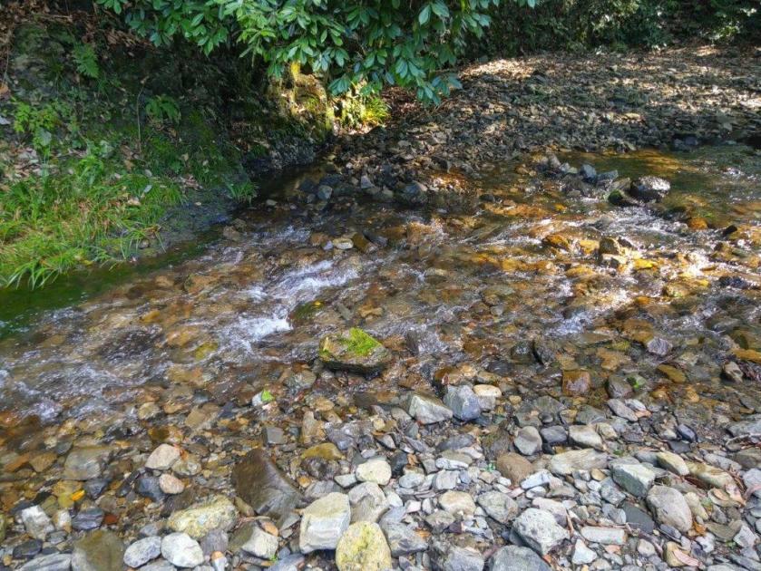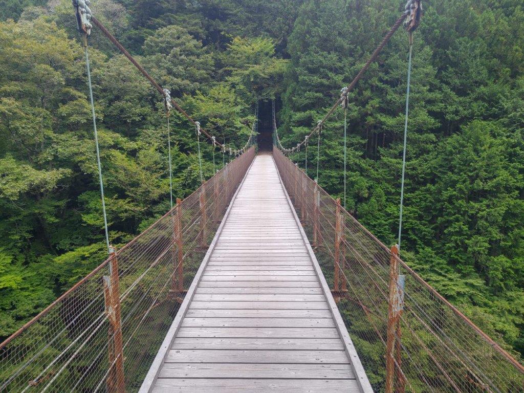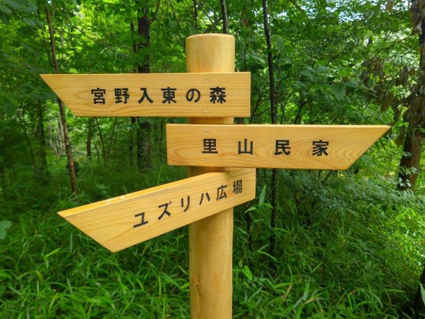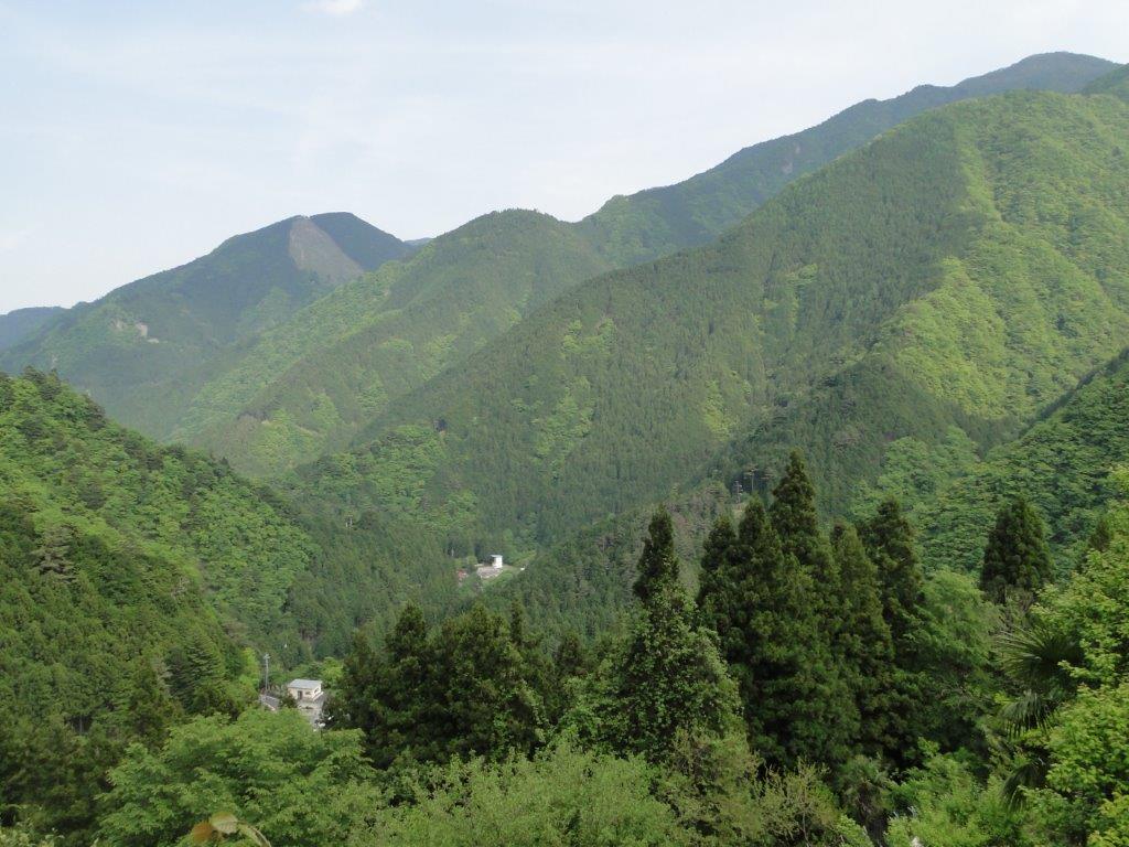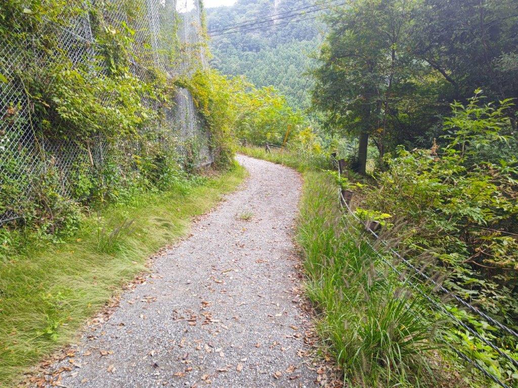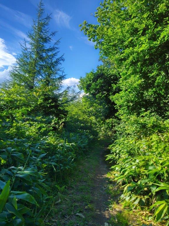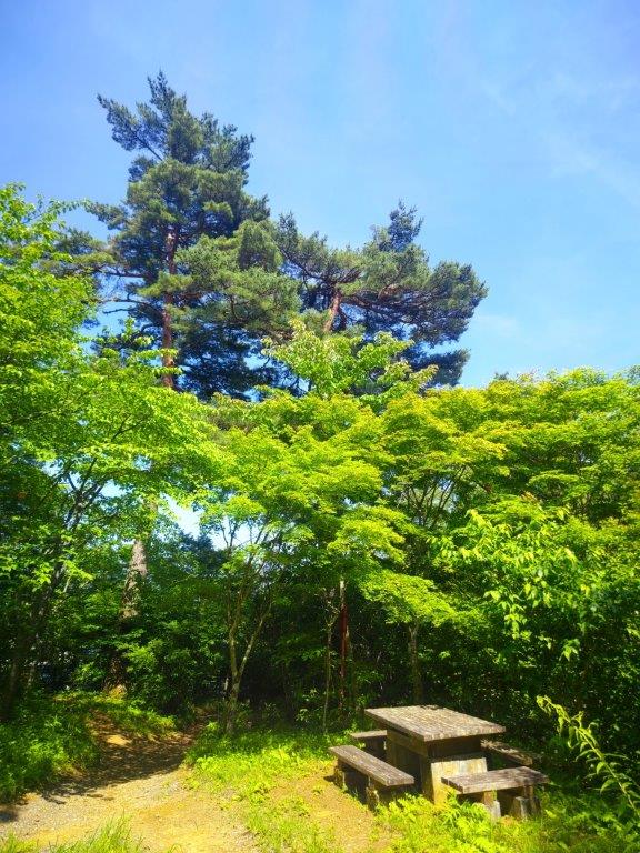 It was a blue sky day as I drove southwards from Kofu station towards the Misaka Mountains (御坂山地). After following a narrow road along the Ashi river valley, I arrived at the Lily of the Valley Flower Colony Parking Lot (すずらん群生地駐車場) just after 11h30. I had to use a smaller parking for hikers since the main one, a little further down the road, was reserved for people using the Twin Terrace Bus. A little after noon, I set off along a faint path starting from the parking lot. After passing a second parking for hikers and crossing a small bridge over a dry riverbed, I arrived at an electric fence beyond which was the start of a well-defined walking path.