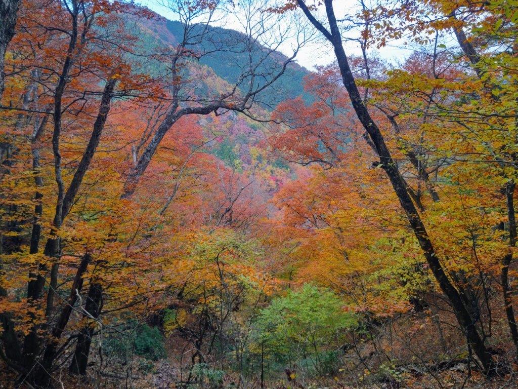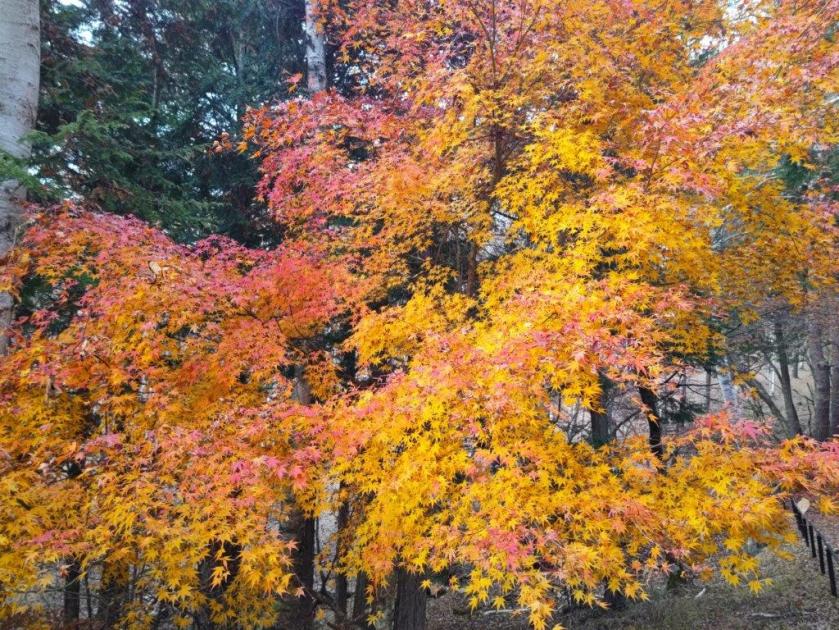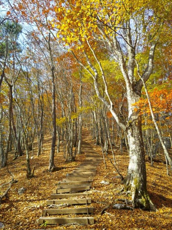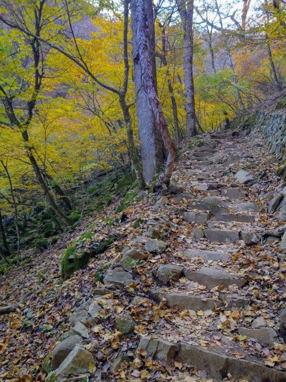 During this part, I finally got a close up view of some beautiful Autumn leaves. A little after 3h30, I arrived back at my car, the last one left in parking area. I drove a short distance to Kamiku-mo-yu, which I reached just before sunset, and after a refreshing hot bath, got back behind the wheel for the return trip to Kofu. Although I experienced a “shy Fuji” today, I was glad I could do a hike in the Fuji area, somewhat of a challenge nowadays due to the high number of overseas visitors. I’d like to return one day and try another hike, but this time starting from Fujiyama Twinterrace.