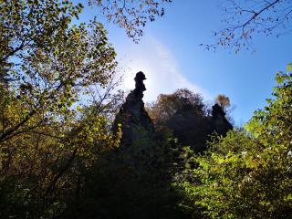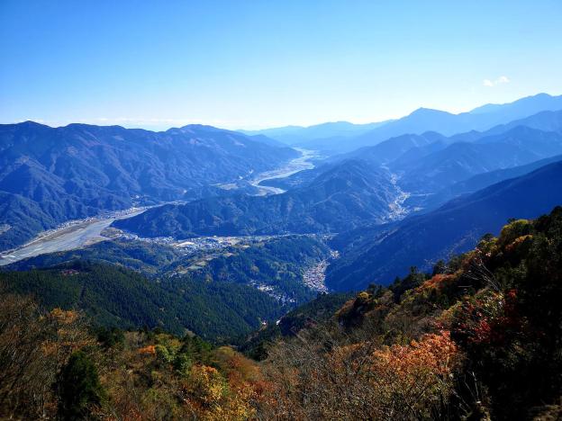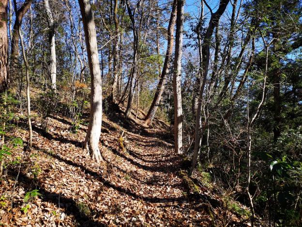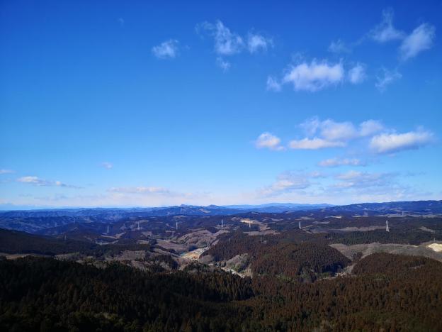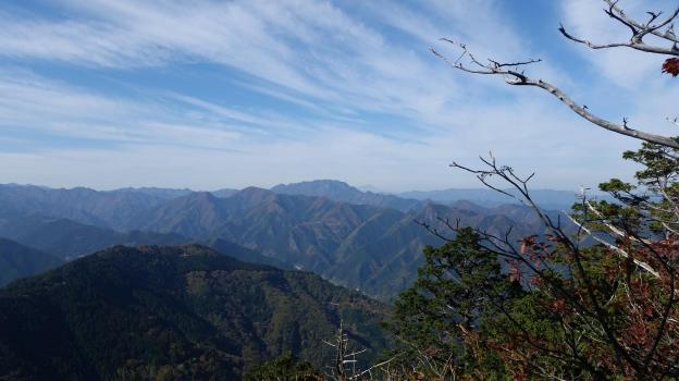 This was my favourite part of the hike. It felt very wild and isolated; it was hard to believe that I was less than 10km from Hon-Atsugi station. I was also surprised that I had never heard about it before; perhaps the locals wanted to keep it a secret. After some descending, and then a short climb via log steps, I reached the summit of Mt Hinata 日向山. Through a break in the trees, I could see the flat expanse of Tokyo. The weather which had been sunny and warm in the morning, was now overcast and windy. I continued along the trail downhill, and soon reached an intersection. I continued straight up the other side to the top of Mt Mijo 見城山, the site of an ancient castle. The view was much better here; below was Nanasawa onsen, and the forested hills separating it from Tokyo.