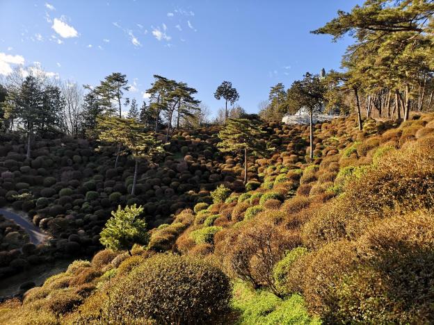 Since the trail ended here, I retraced my steps to the intersection, only a few minutes away, and turned left down the mountain, following the sign for the intriguingly named Turtle Rock 亀岩 (in English on the sign). I spotted it, just before arriving at a road, a massive moss-covered boulder in the midst of the cedar forest beyond a small stream. I walked up the road for a few minutes to check out the Nanasawa Observatory. It was a worn-out structure with an unimpressive view, a curiosity from past times. However, I did get a glimpse of the first signs of spring on the branches of the nearby trees. I continued down the road, and just after 4pm, I arrived at Tamagawakan, a Ryokan more than 100 years old; it even had an old rotary public phone near the lobby. After a short hot spring bath, I caught the bus for Hon-Atsugi station from the nearby bus stop, and from there, I took the Romancecar for the short trip back to Tokyo.