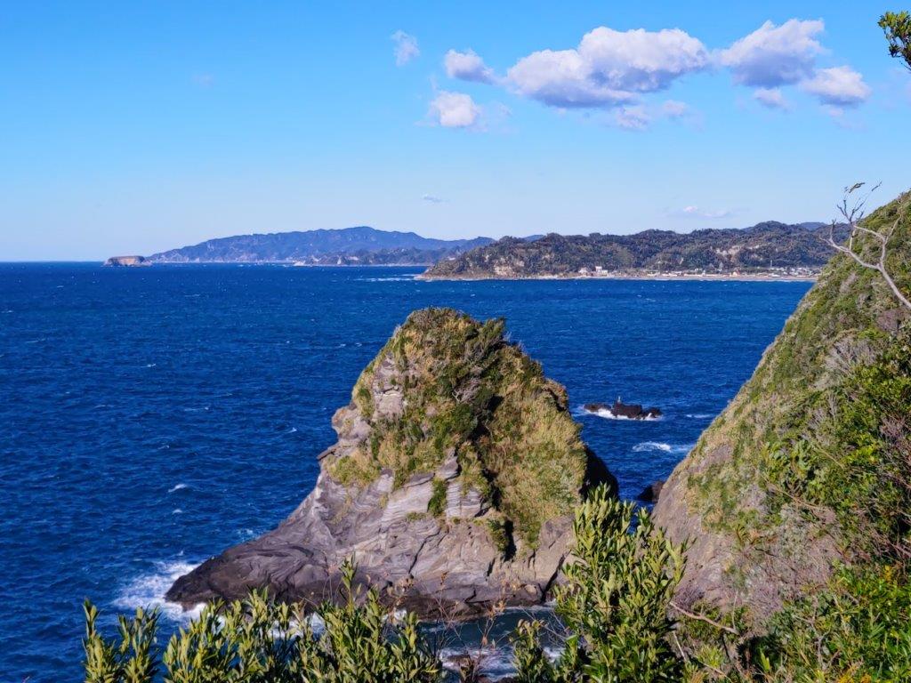 The Taibusa Cape Nature Park in Minamiboso is a great place for a short stroll with oceanic views, less than an hour walk from Tomiura station, two stops north of Tateyama. Starting from the information center next to the parking lot, it takes about an hour to make a loop of the park. On the way, one can check out an observation tower, an observation deck and the ruins of an old fort. From Iwai station, one stop away, is the start of the Kinone Pass hike.