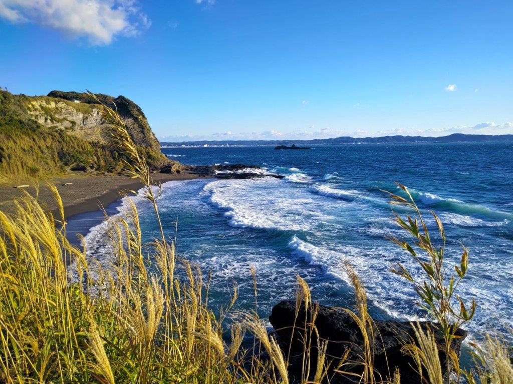 The marker for the southernmost point of the Boso peninsula can be reached via a circular path around the cape: nearby is a white, solitary bench on top of a rock, the perfect place to gaze at the Pacific ocean stretching away into the distance. Following the “Boso flowerline” road for about ten minutes east leads to the start of the hike for Mt Takatsuka.