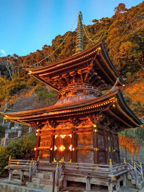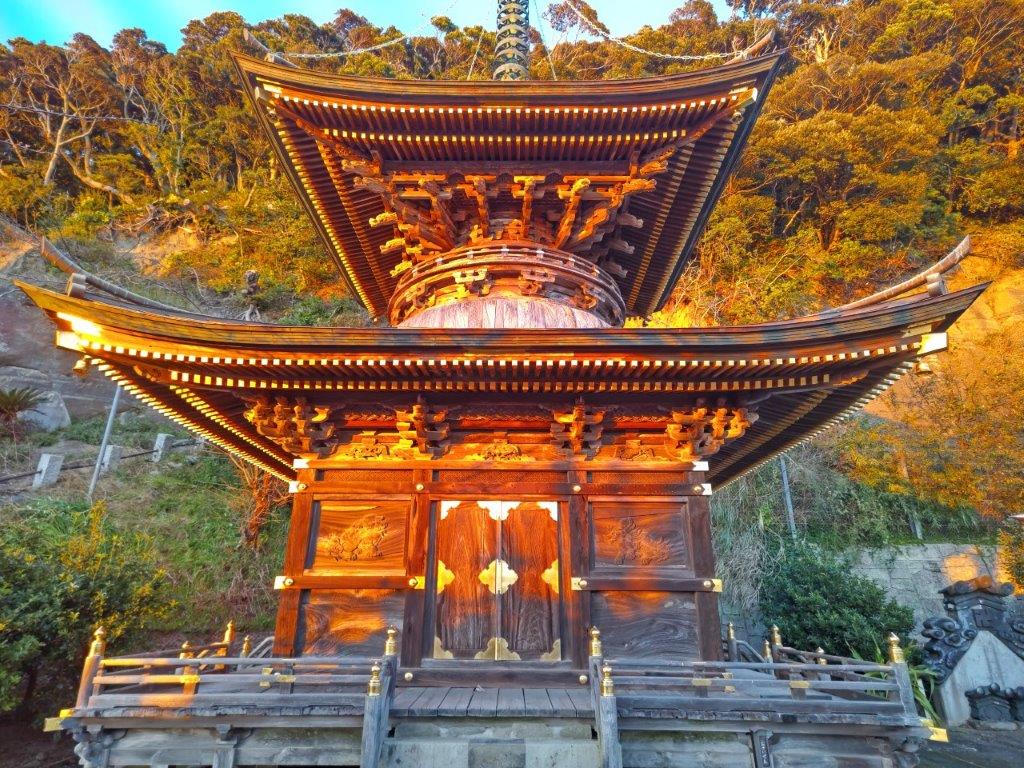 In the opposite direction is Nago-ji, a temple built on a hillside, and featuring a charming pagoda and another view of Tateyama bay; cherry blossom trees can be seen in spring. The trail to the observation deck higher up was damaged by the 2019 typhoons and is currently closed.