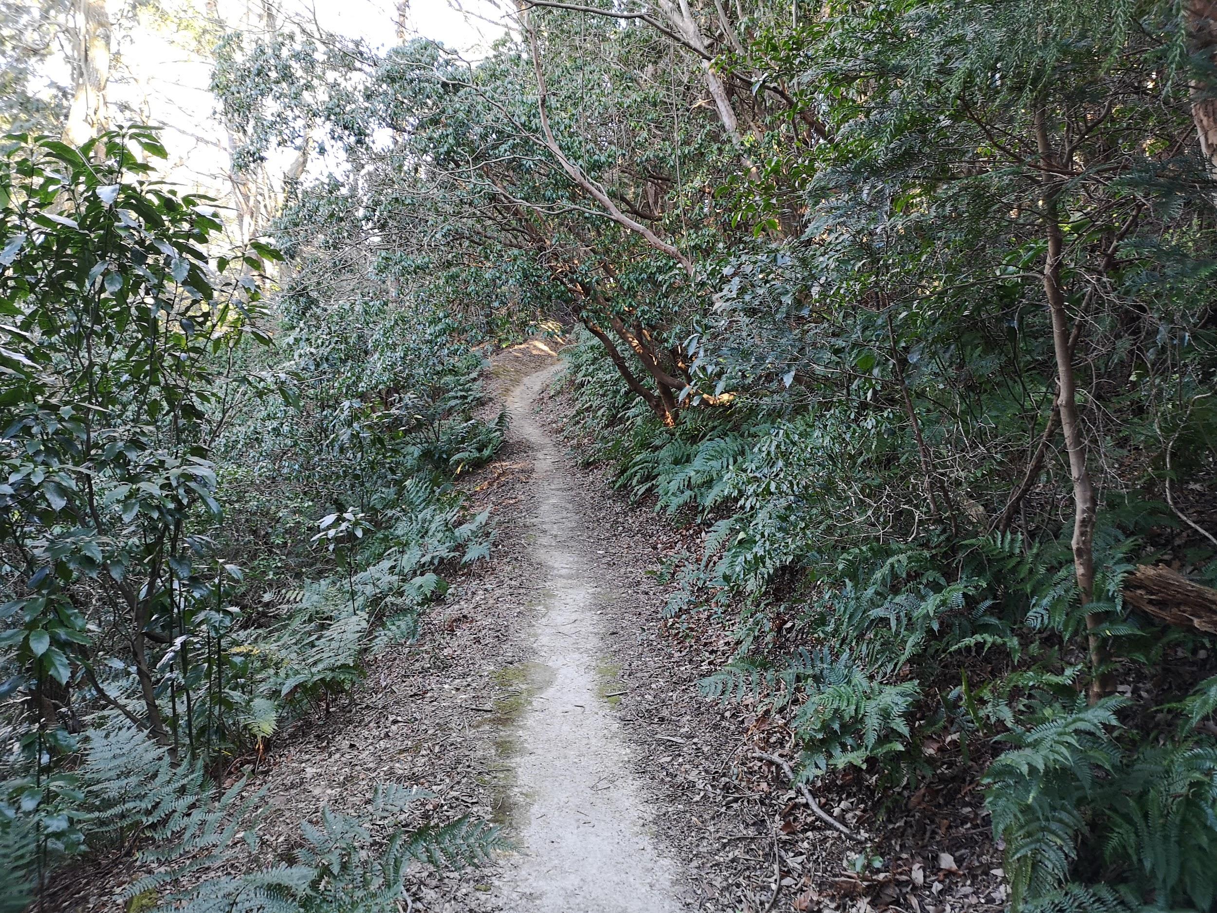 Climbing the narrow ridgeline (left) Walking back along the forest road (right)